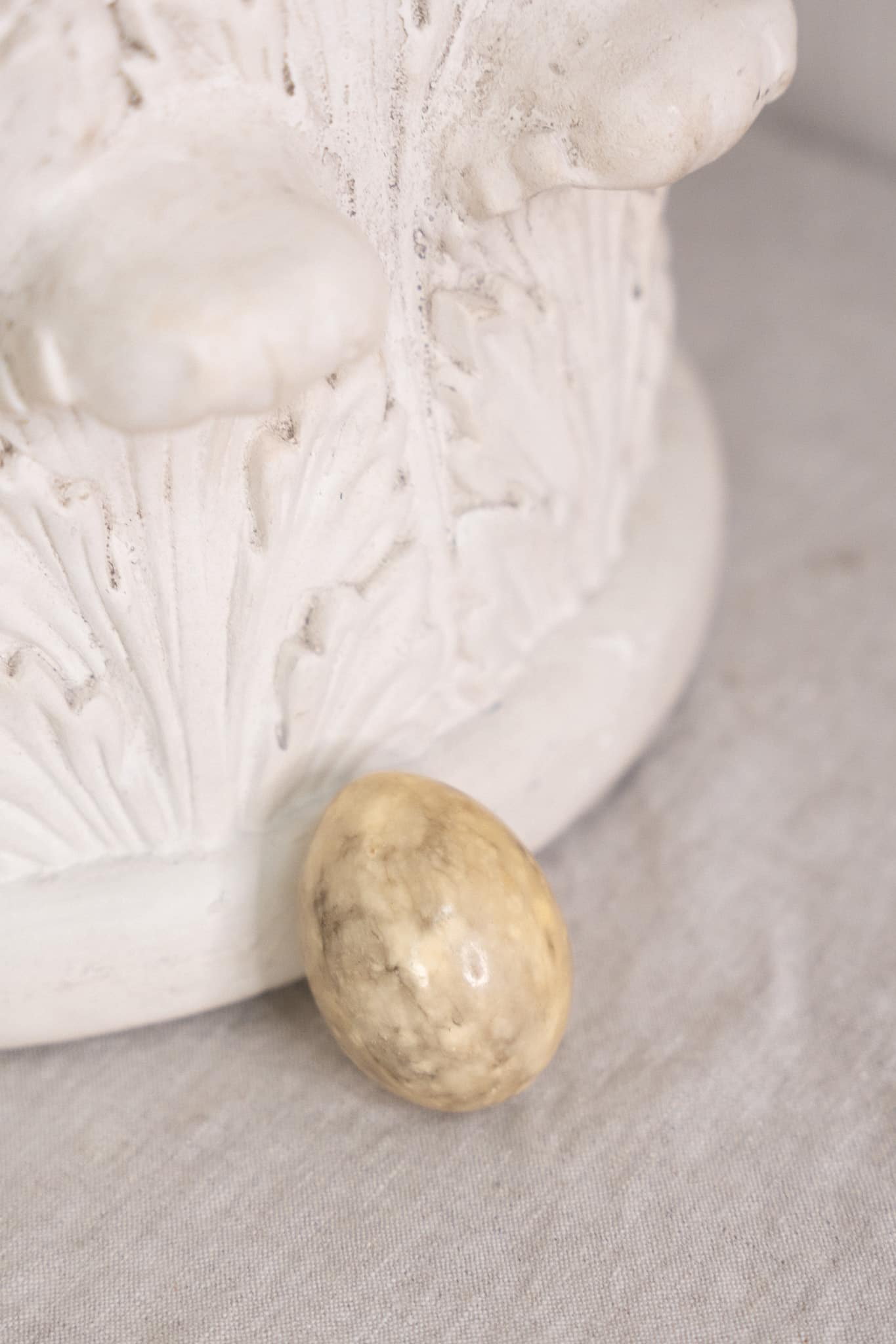 Alabaster egg. Perfect for some subtle Spring/Easter decor. Minor wear consistent with age.