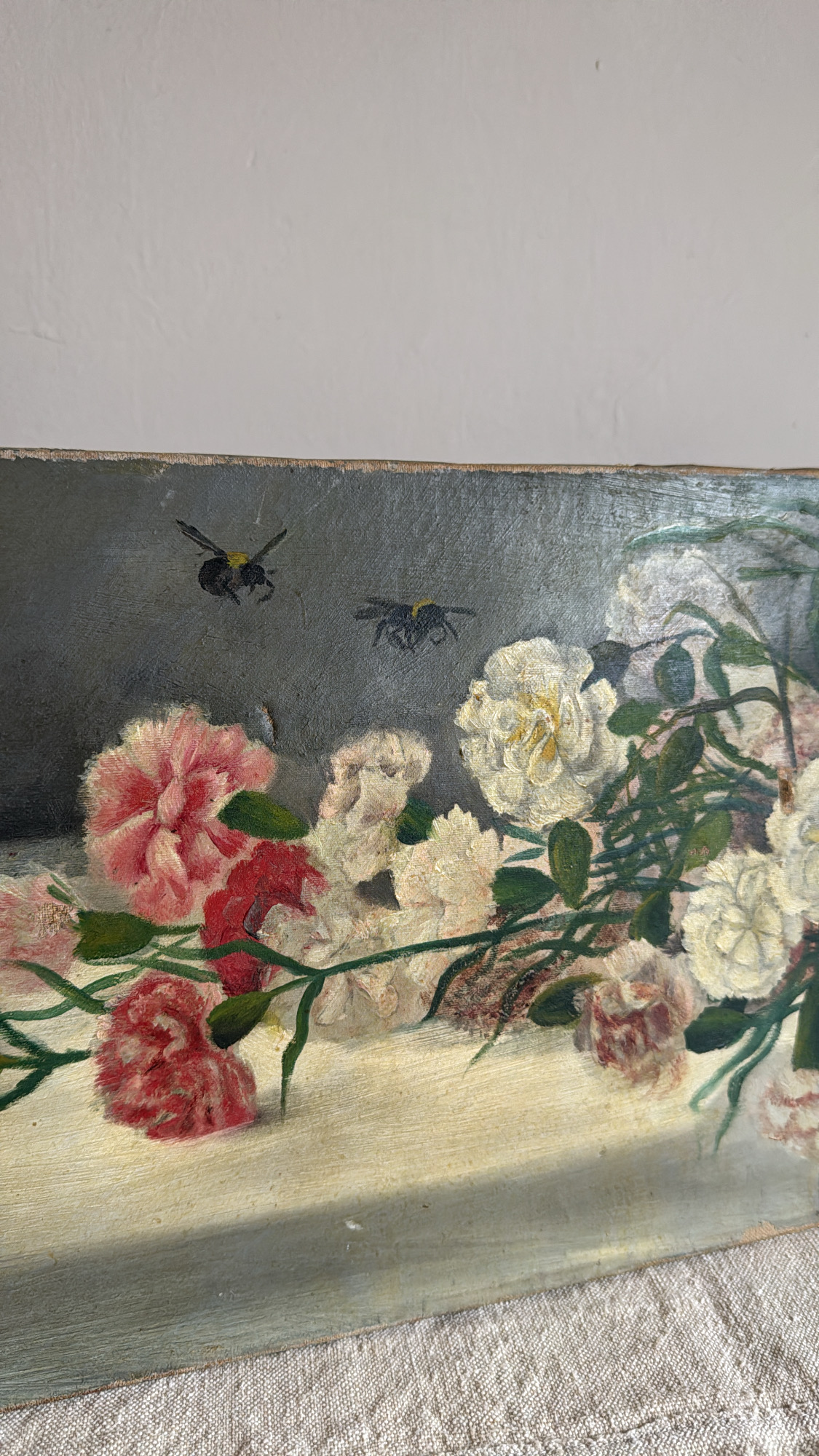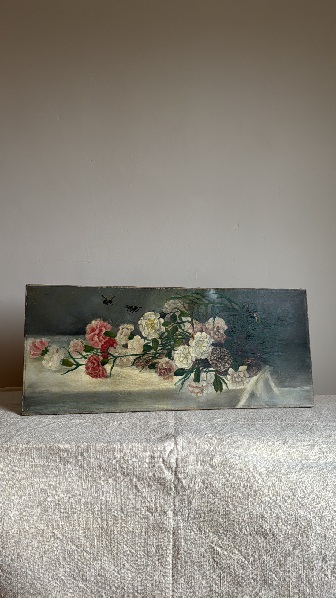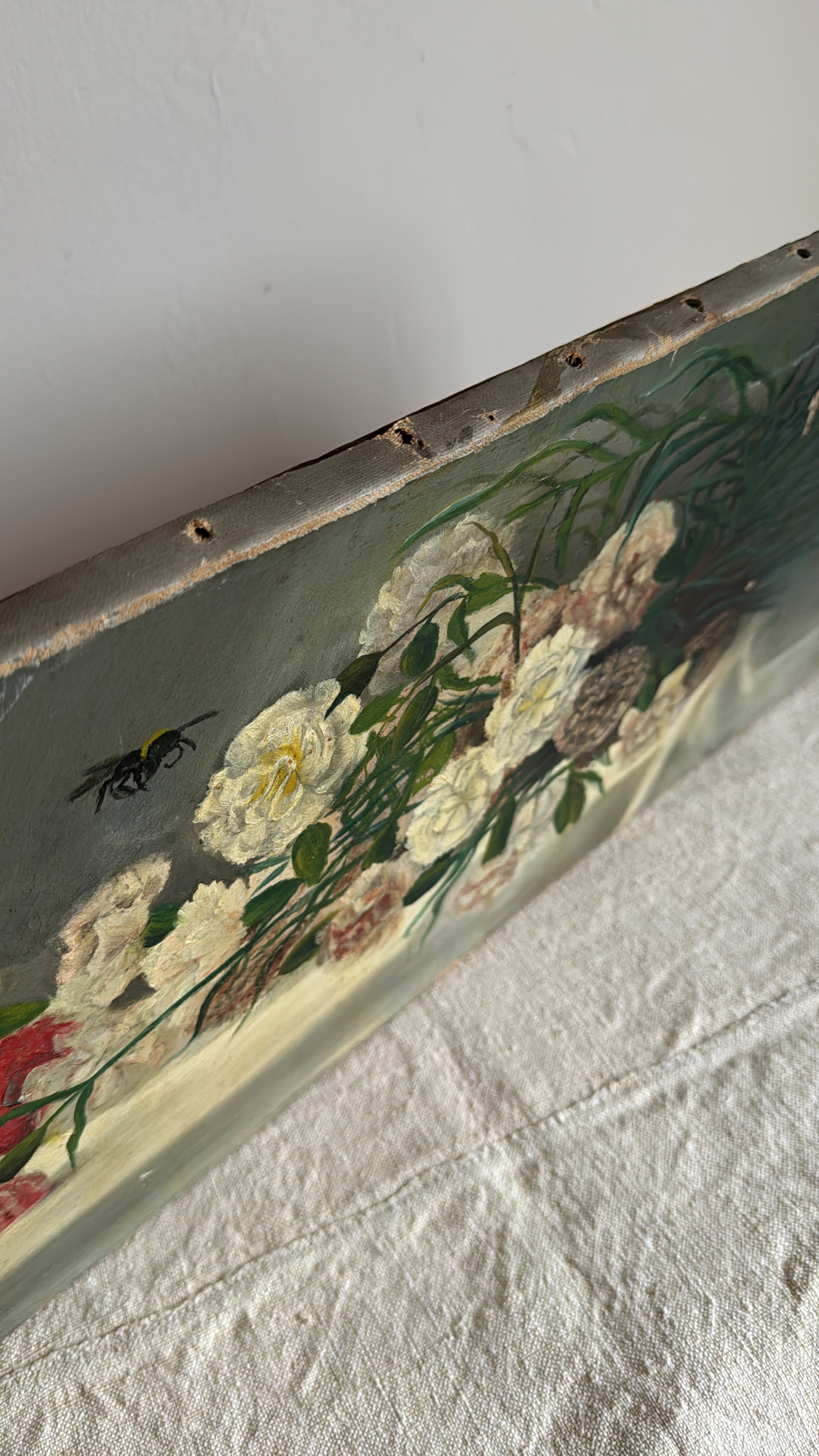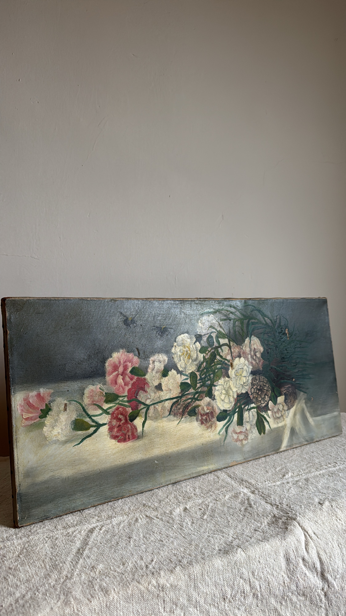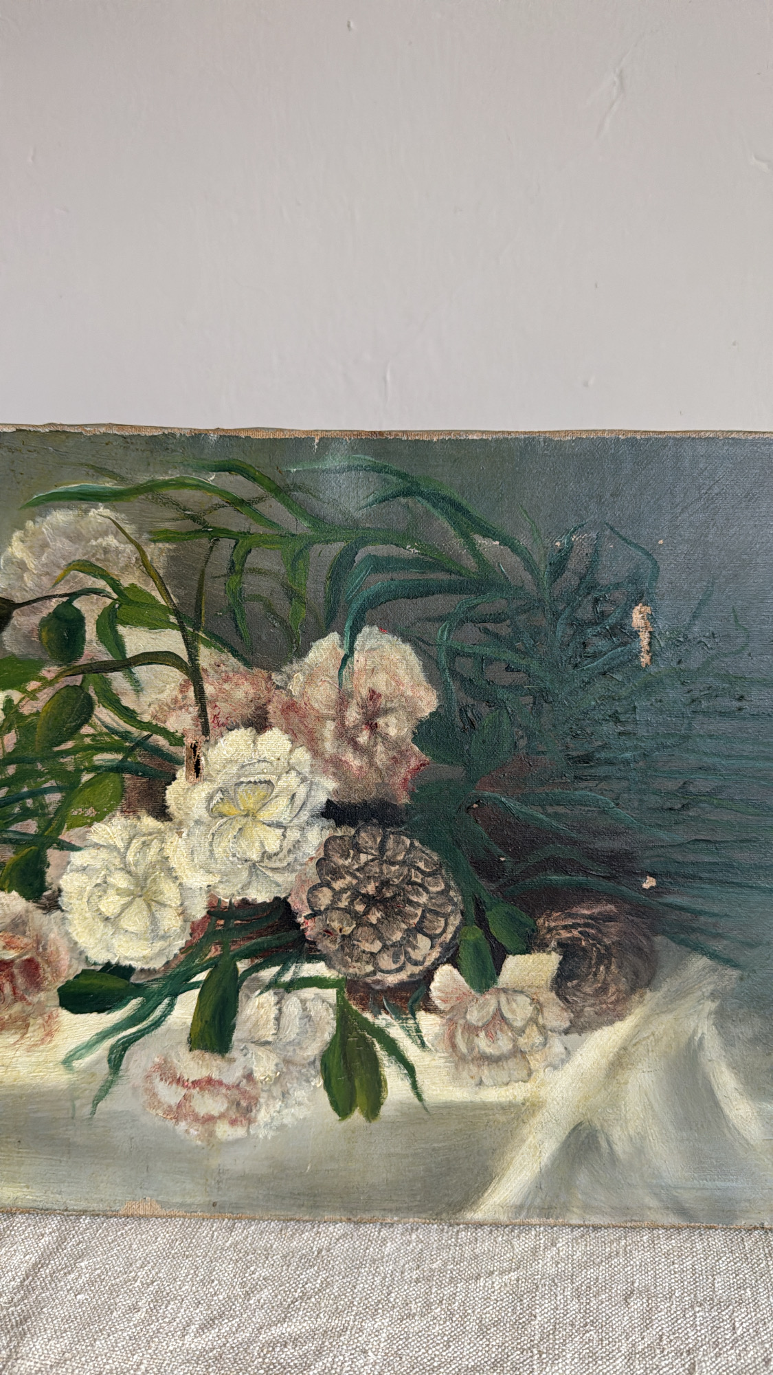 Antique Floral Oil Painting on Canvas