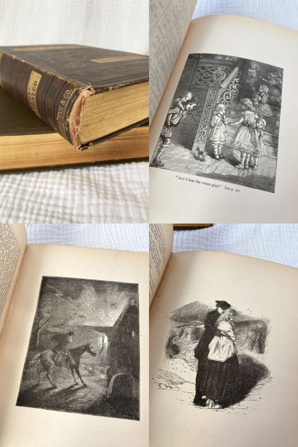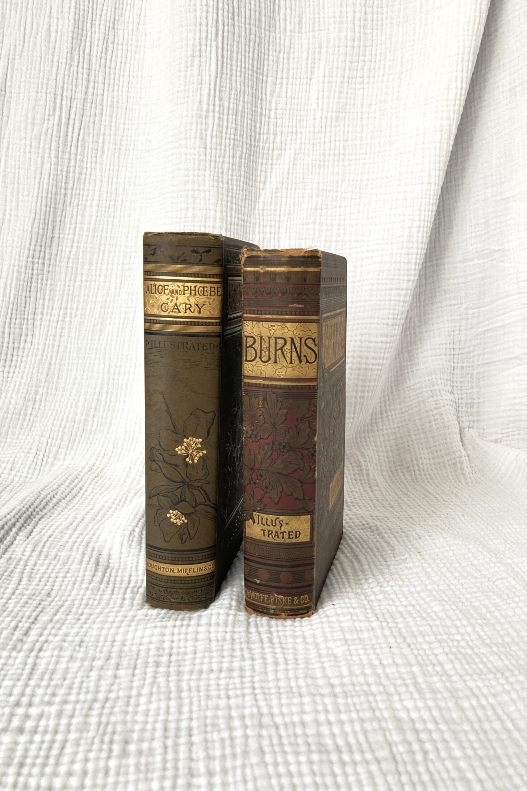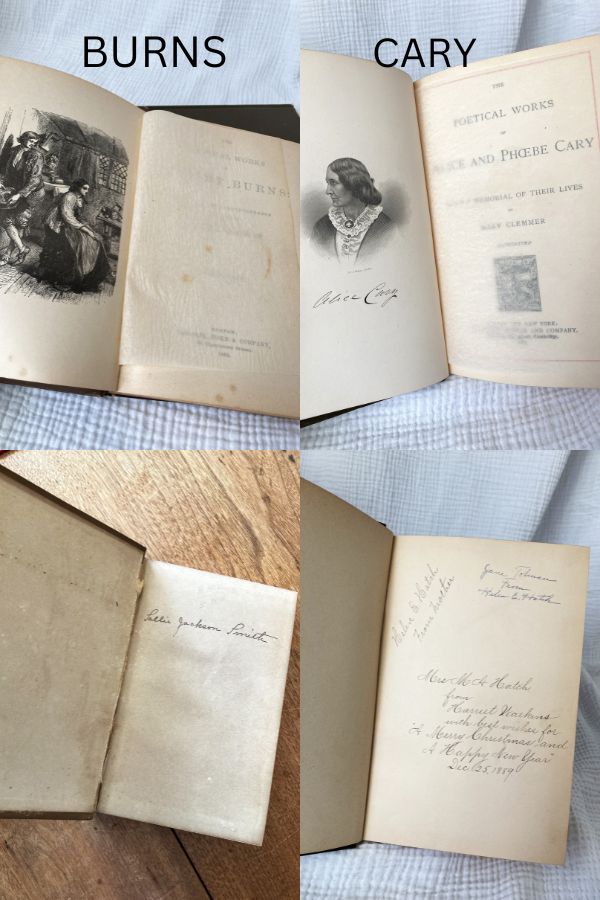 2 – Poetical Works of Alice and Phoebe Cary – Alice (1820-1871) and Phoebe Cary (1824-1871) grew up on a farm in Ohio and wrote poetry from an early age, eventually moving to New York and making a living as writers. Book published by Houghton, Mifflin and Company, Boston and New York, in 1887. Stitched binding; 435 gilded pages, dozens of illustrations.