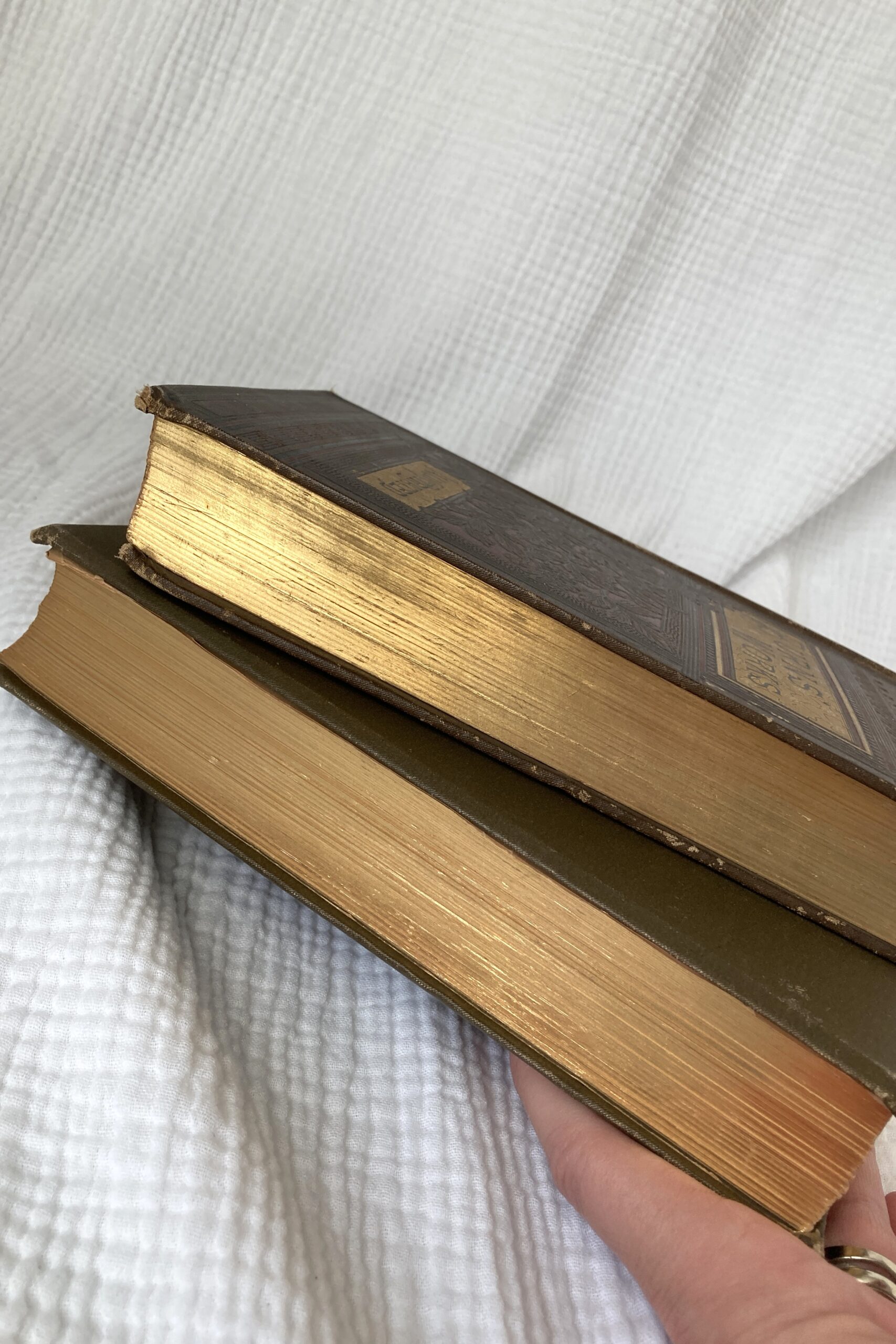 Two antique illustrated poetry books, lovely brown covers with gold accents: