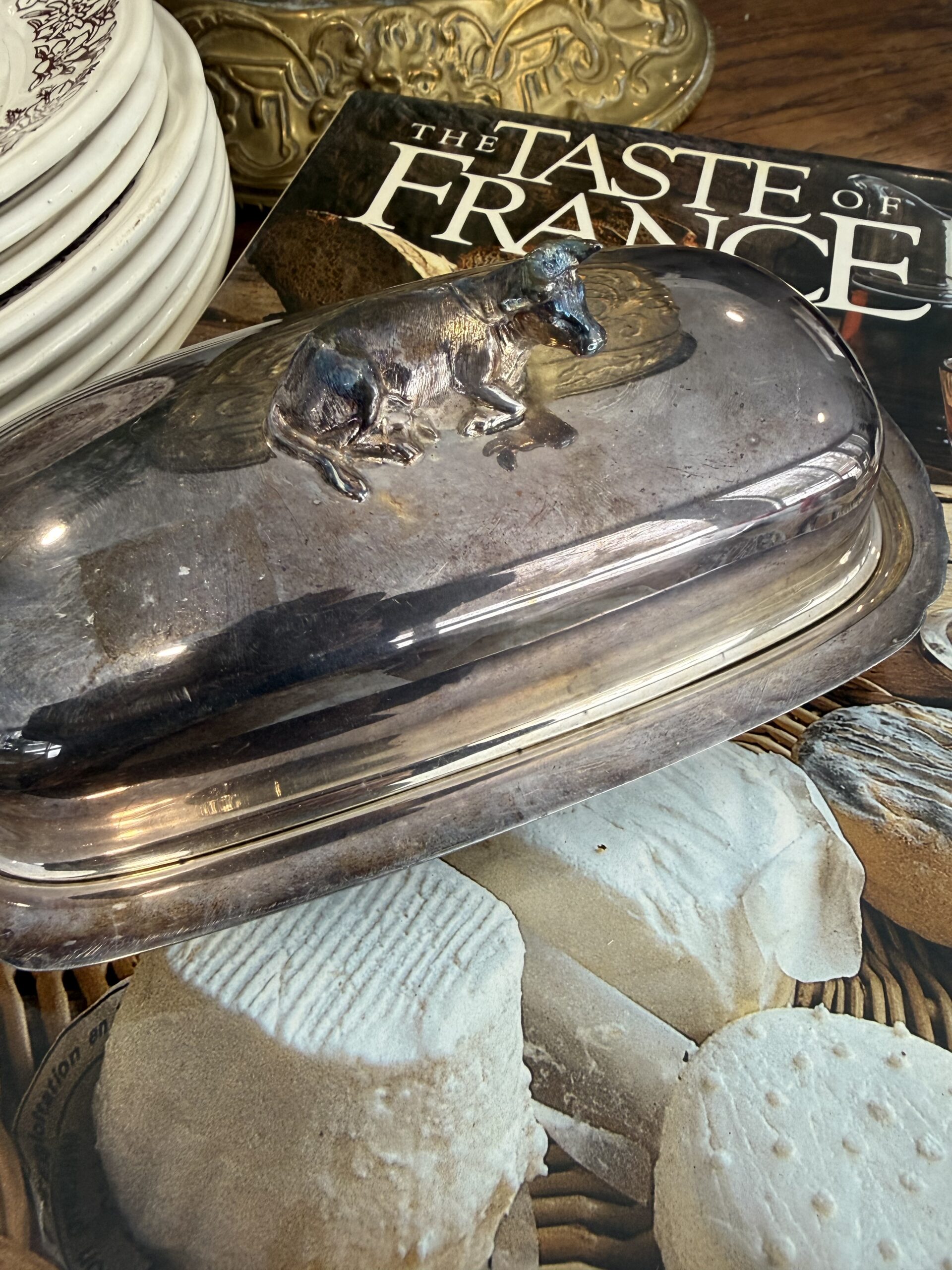 Reed and Barton silver plate with sweet cow finial. Glass insert.