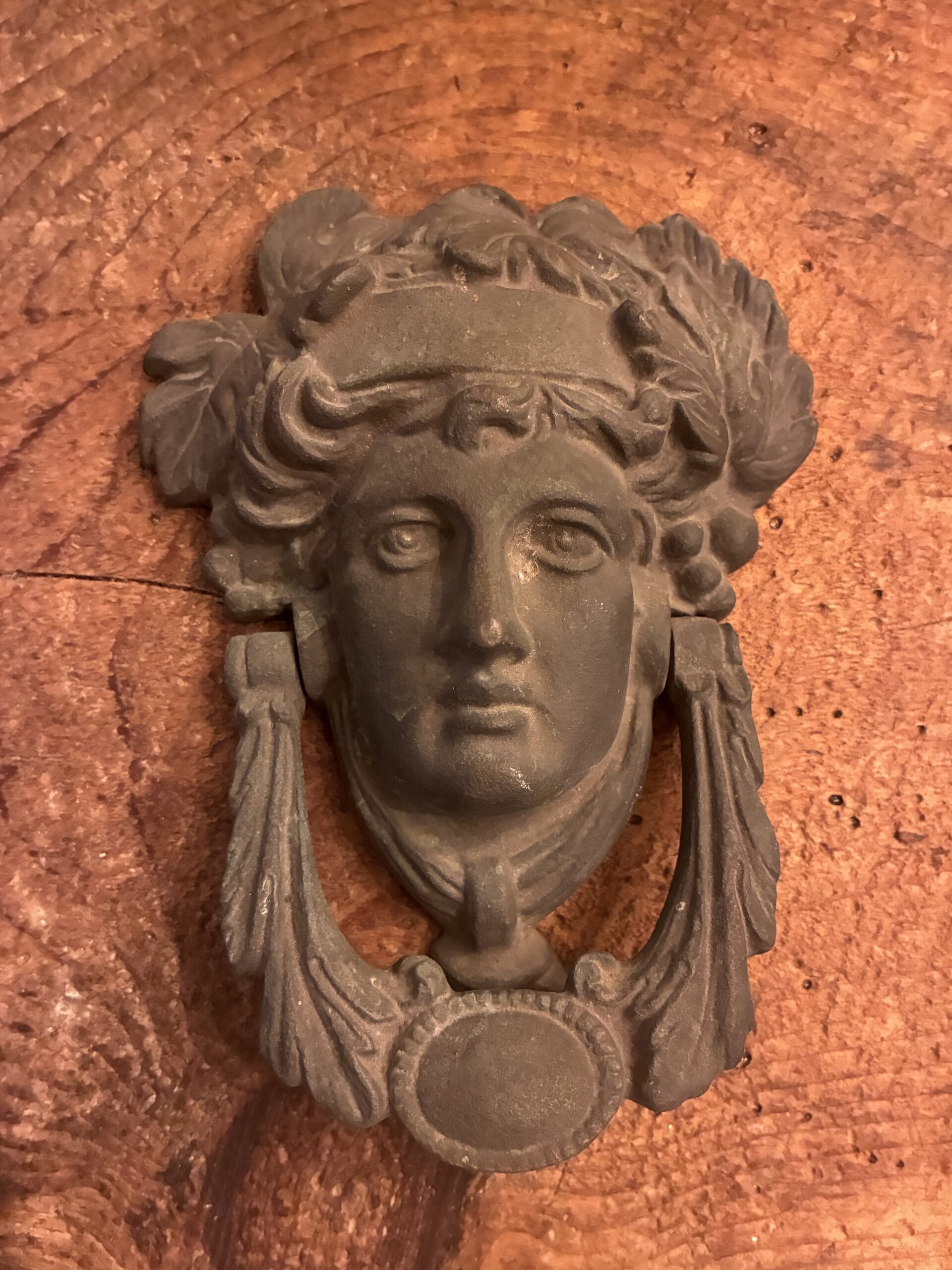 Stunning antique cast iron door knocker makes a statement whether added to a door, placed on a stack of books or on your coffee table. She is beautiful!