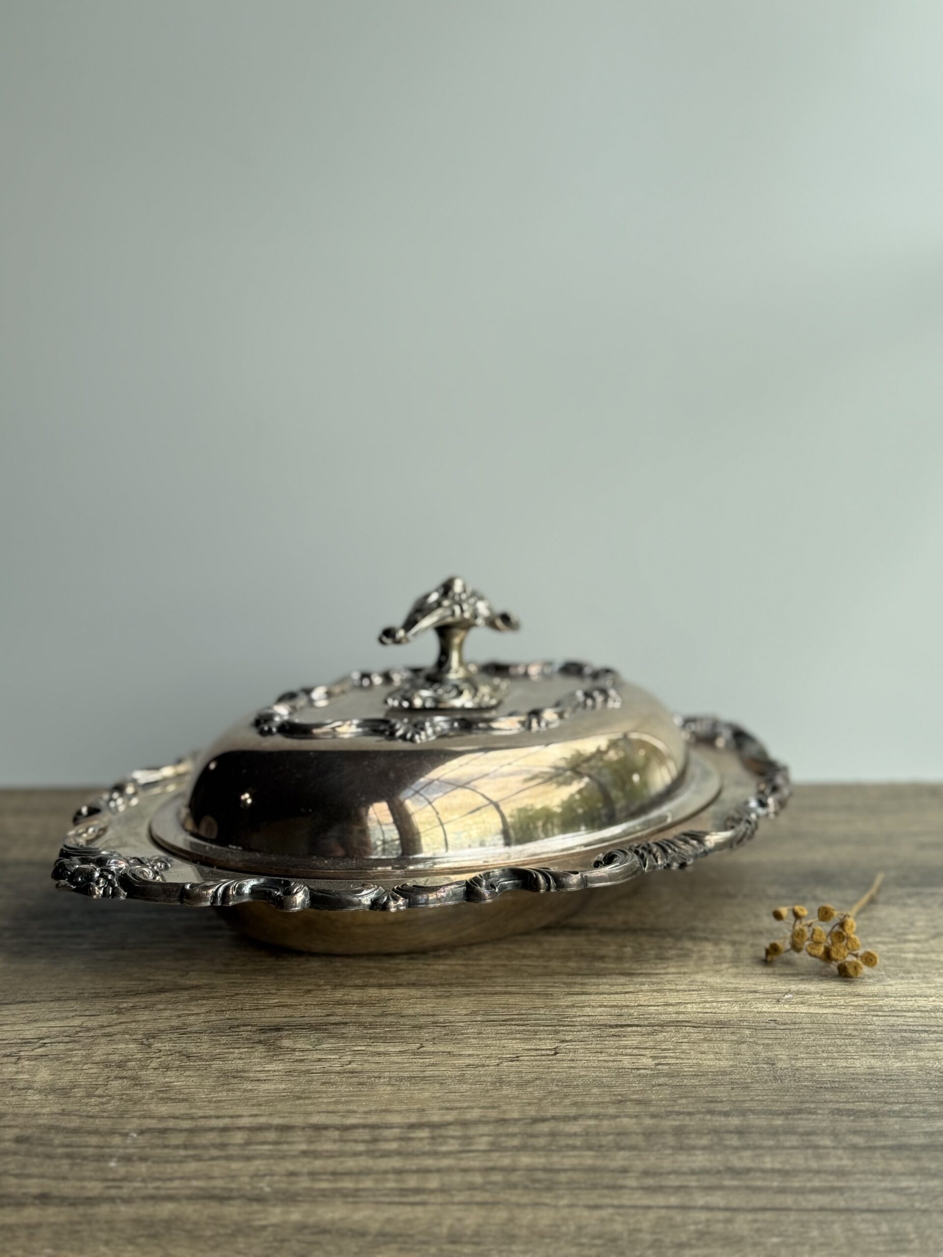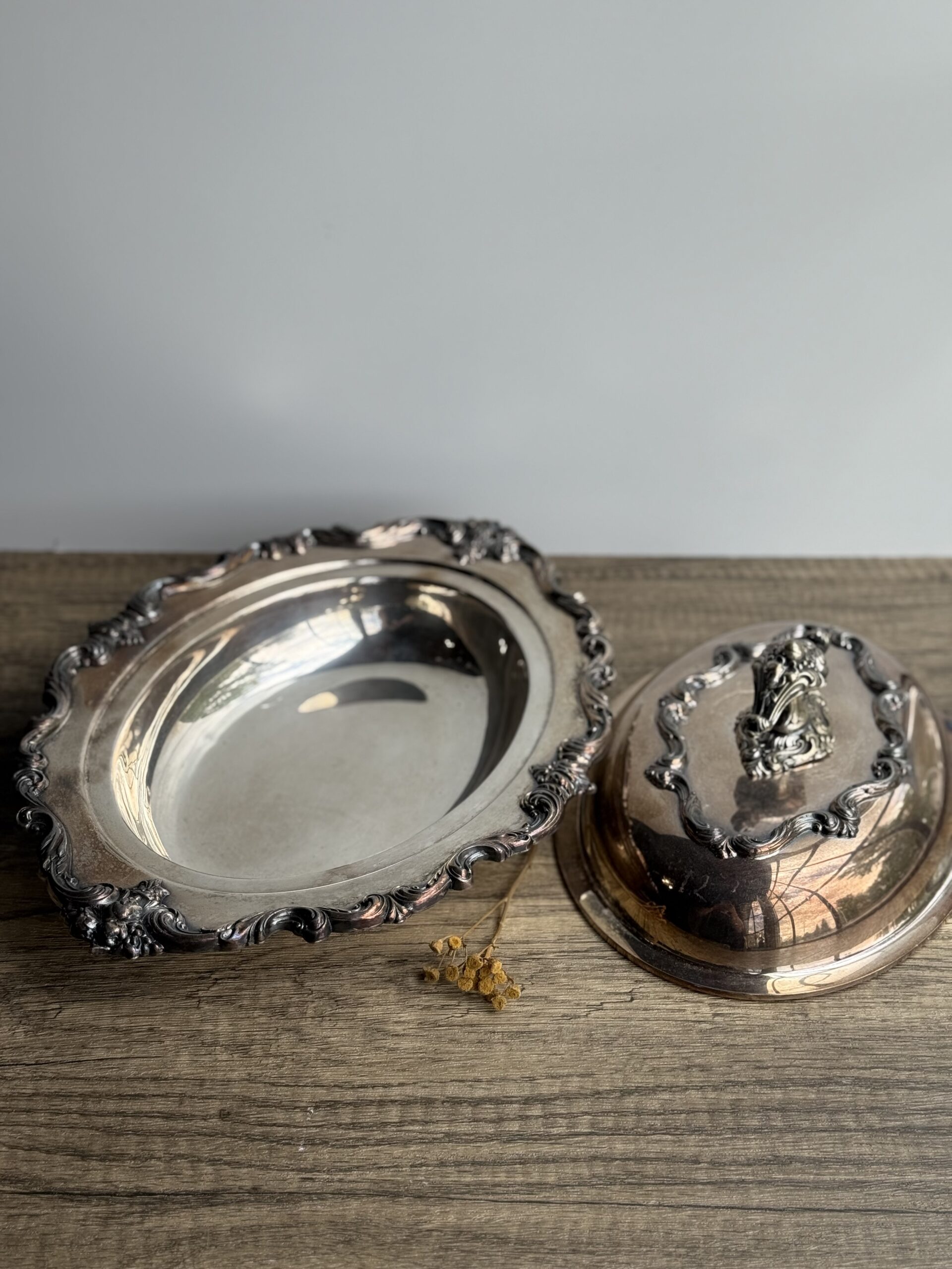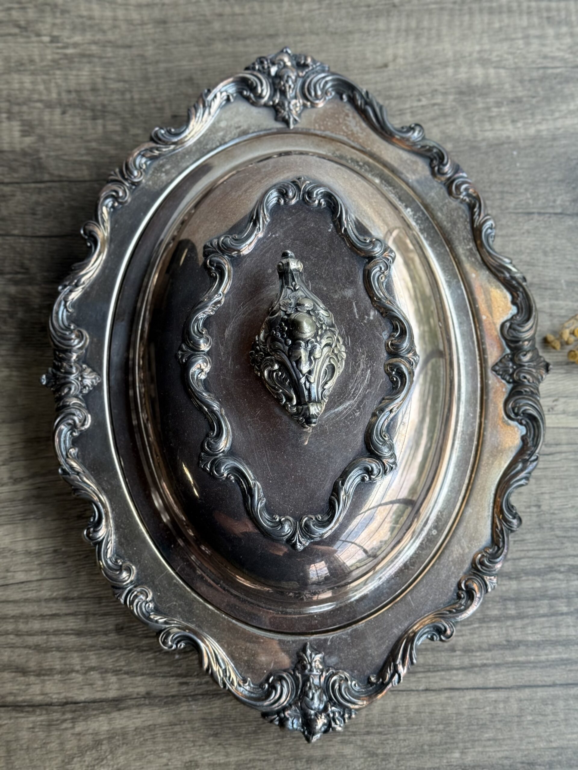 Beautiful E.G. Webster and Son silver plated serving dish with lid. Has patina and some wear. 1928-1961. Bottom marked EGW&S International Silver Co. The handle can twist off (photo 3)