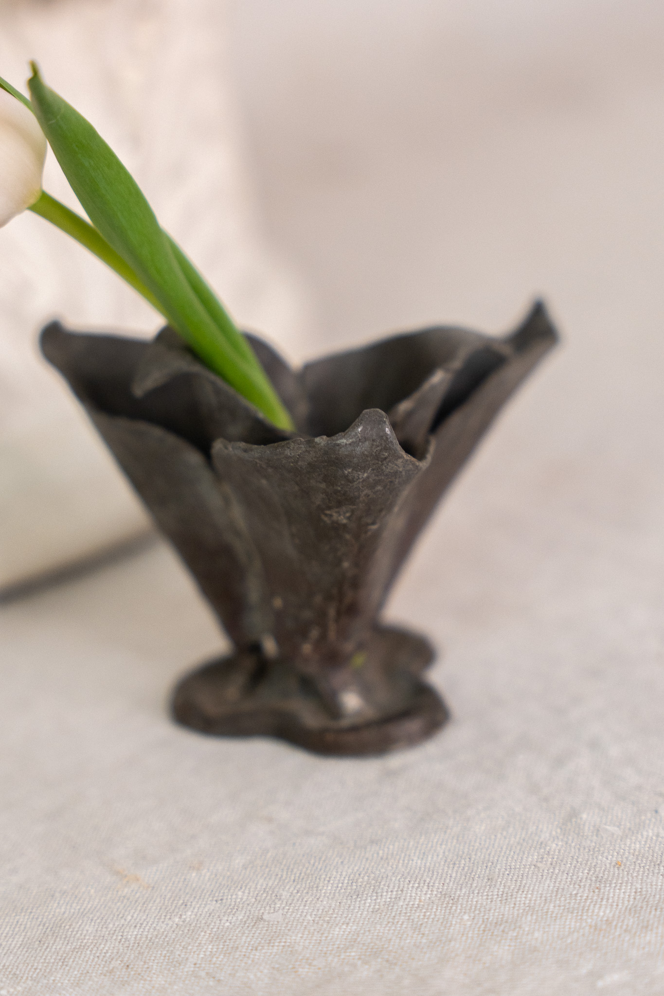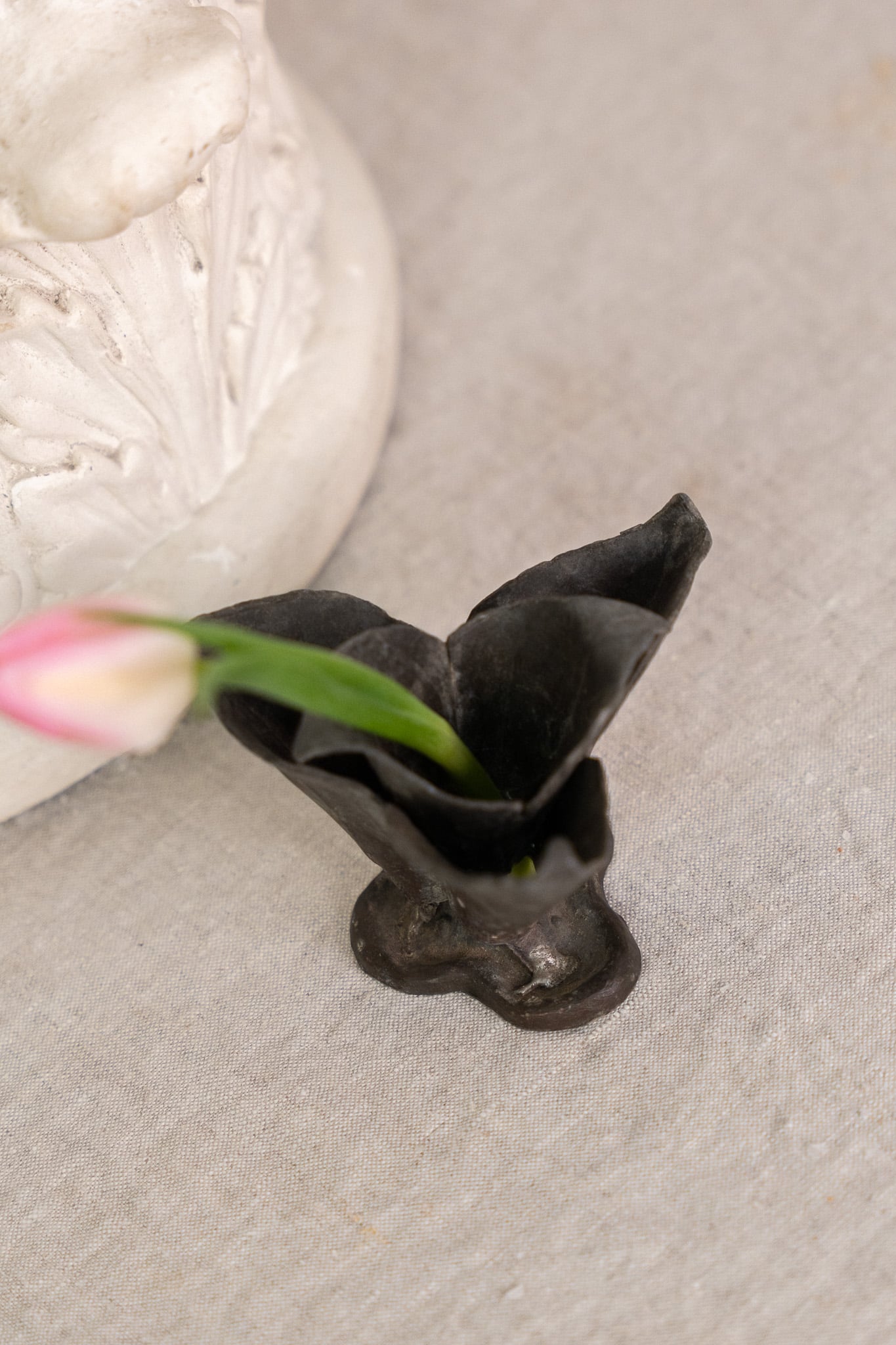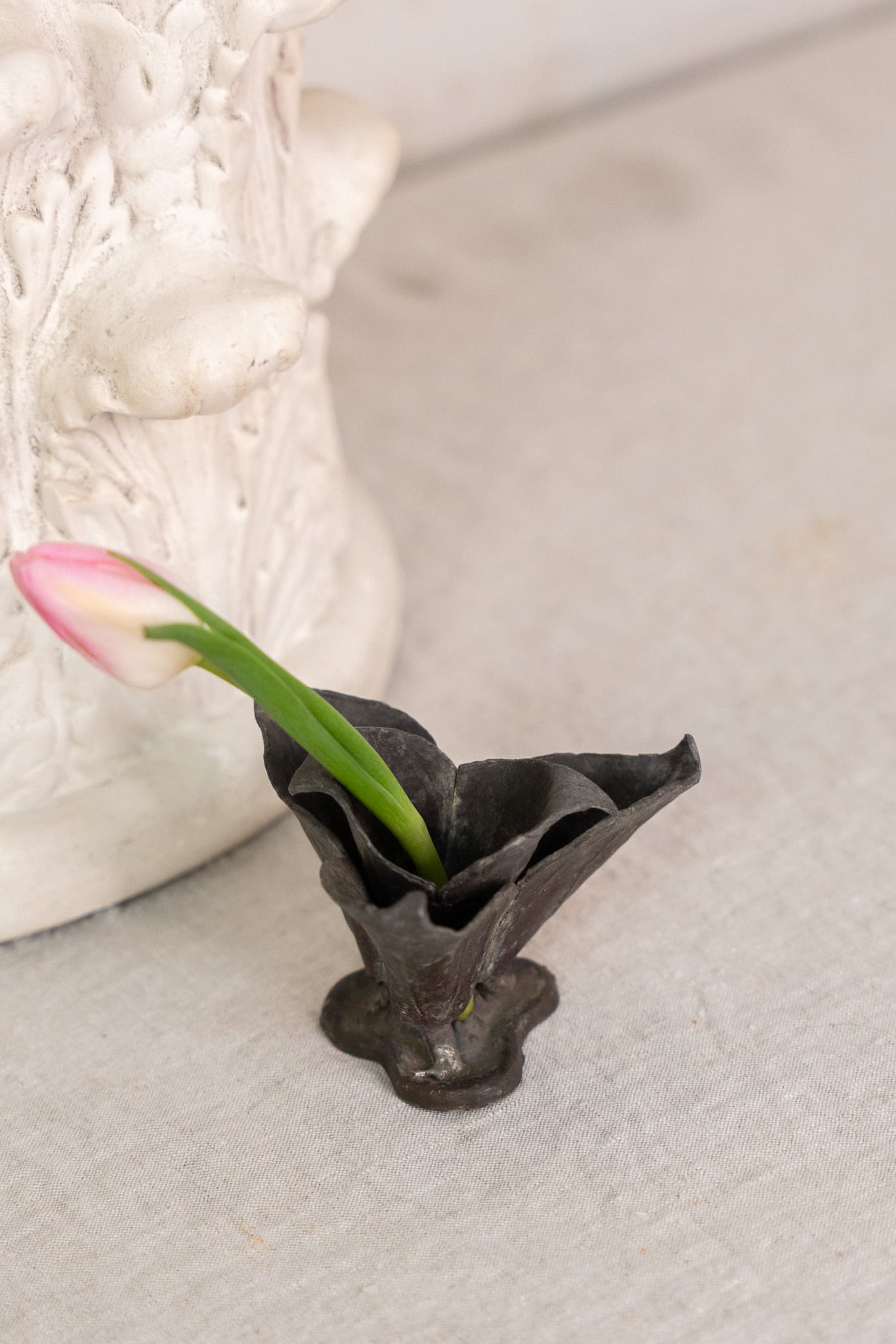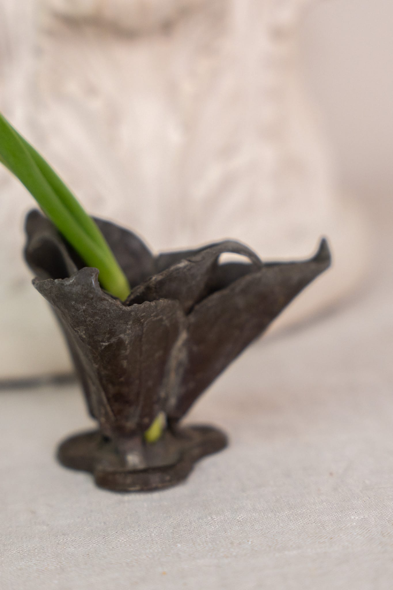 Antique iron flower frog. One would place this flower frog in a vase/bowl to help keep flowers in place as you style them strategically. Wear consistent with age.