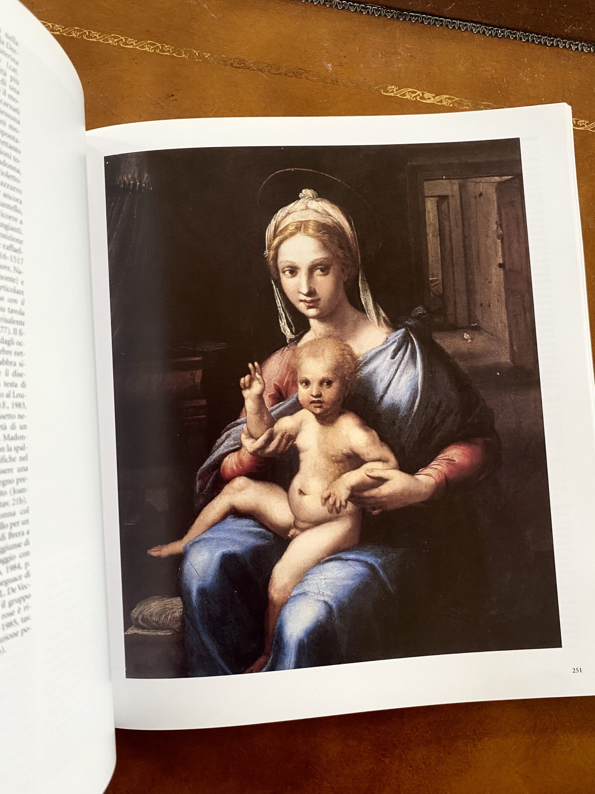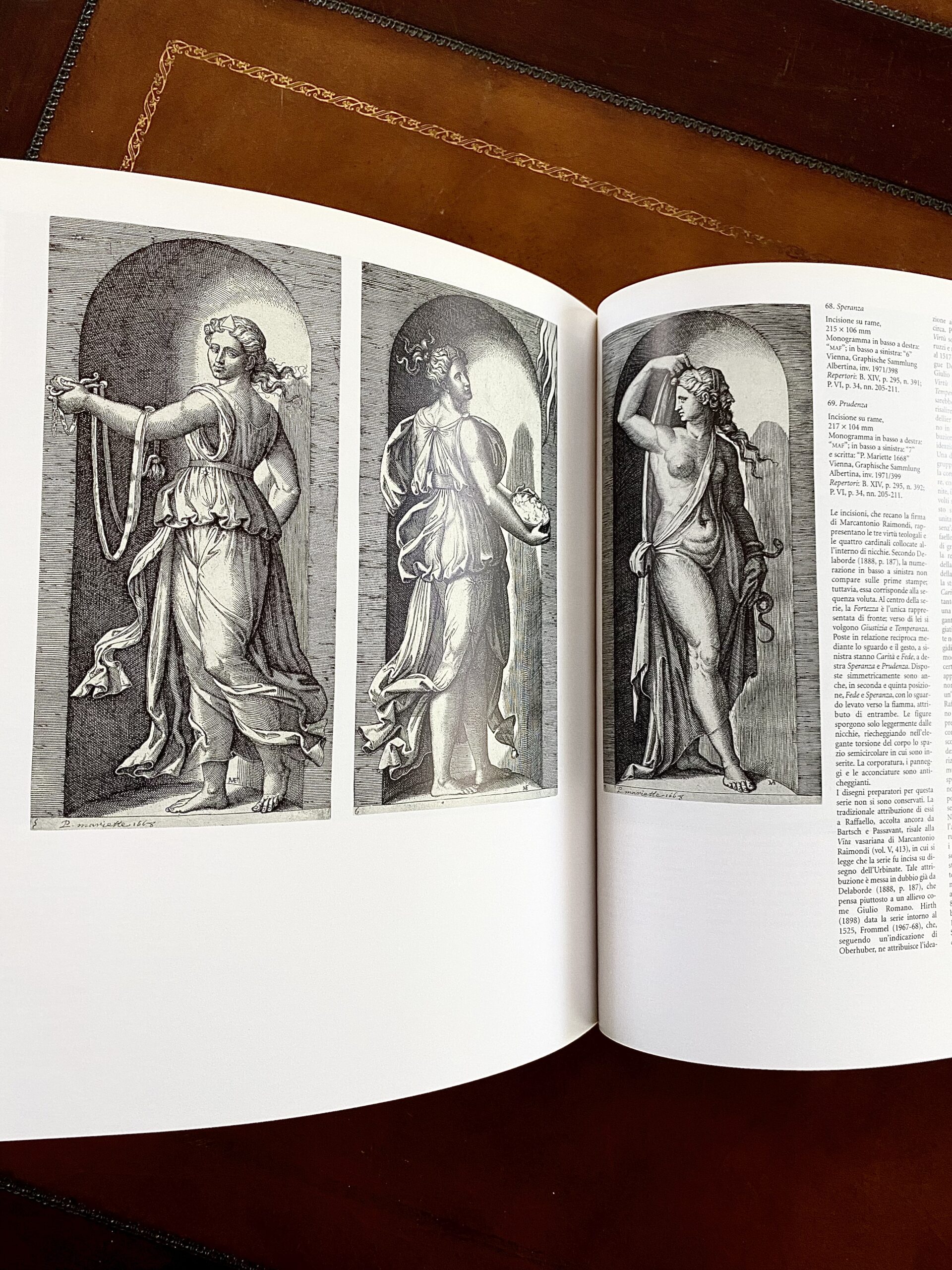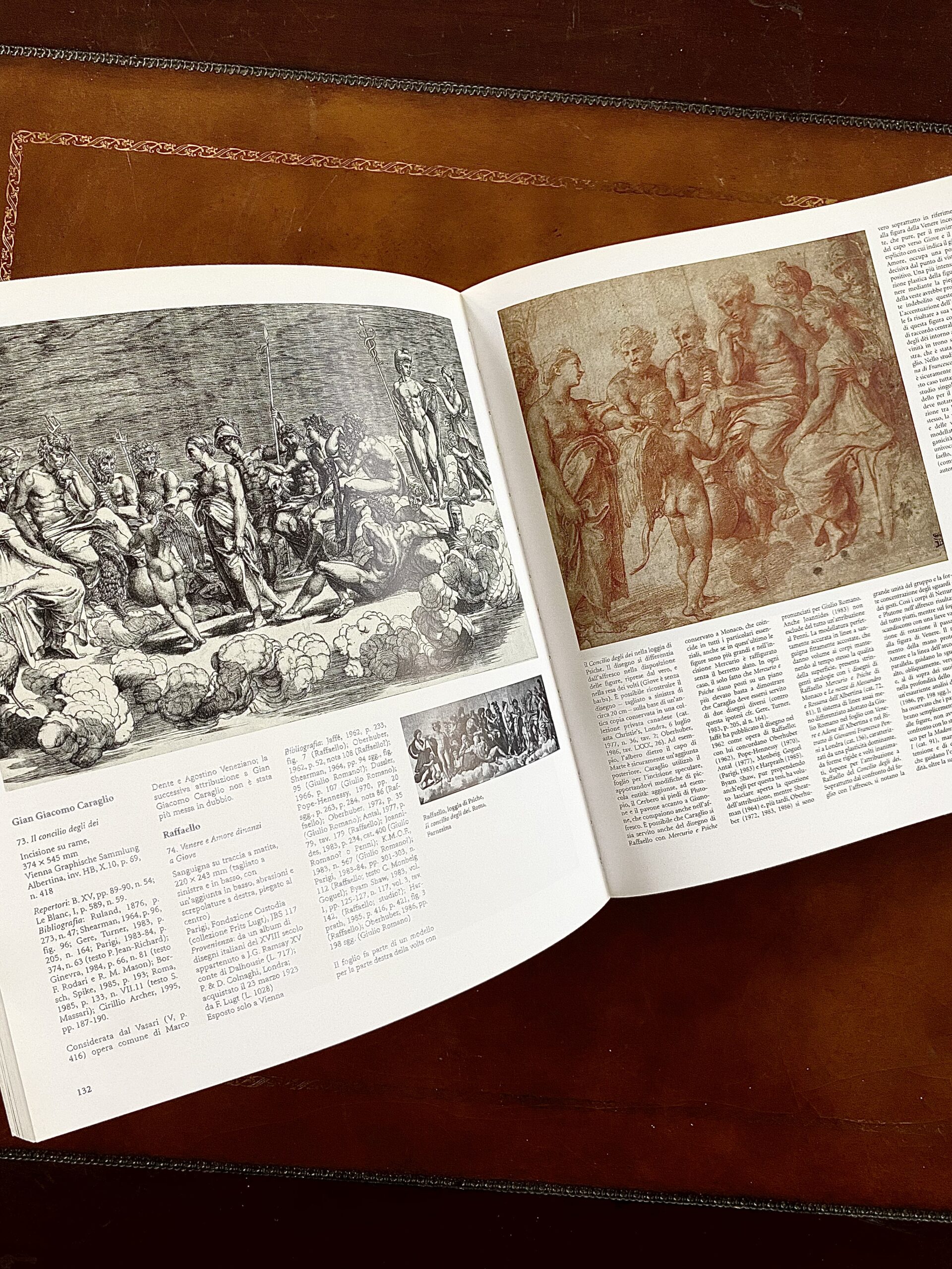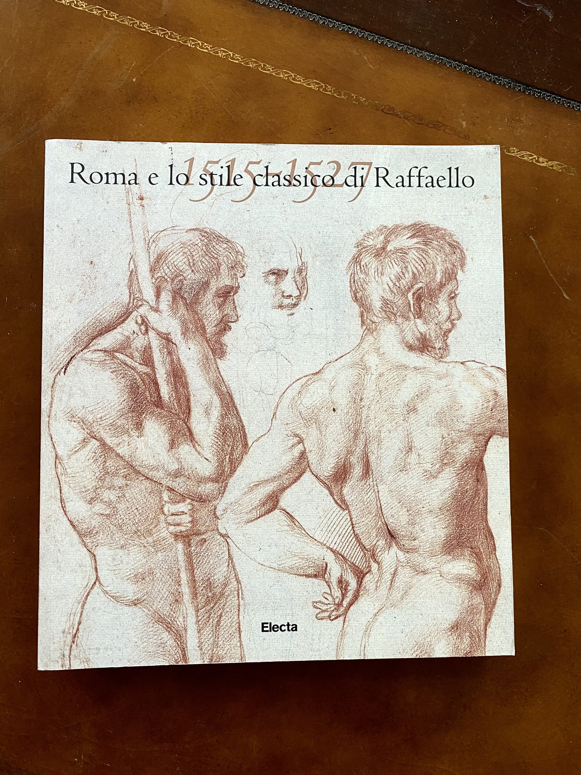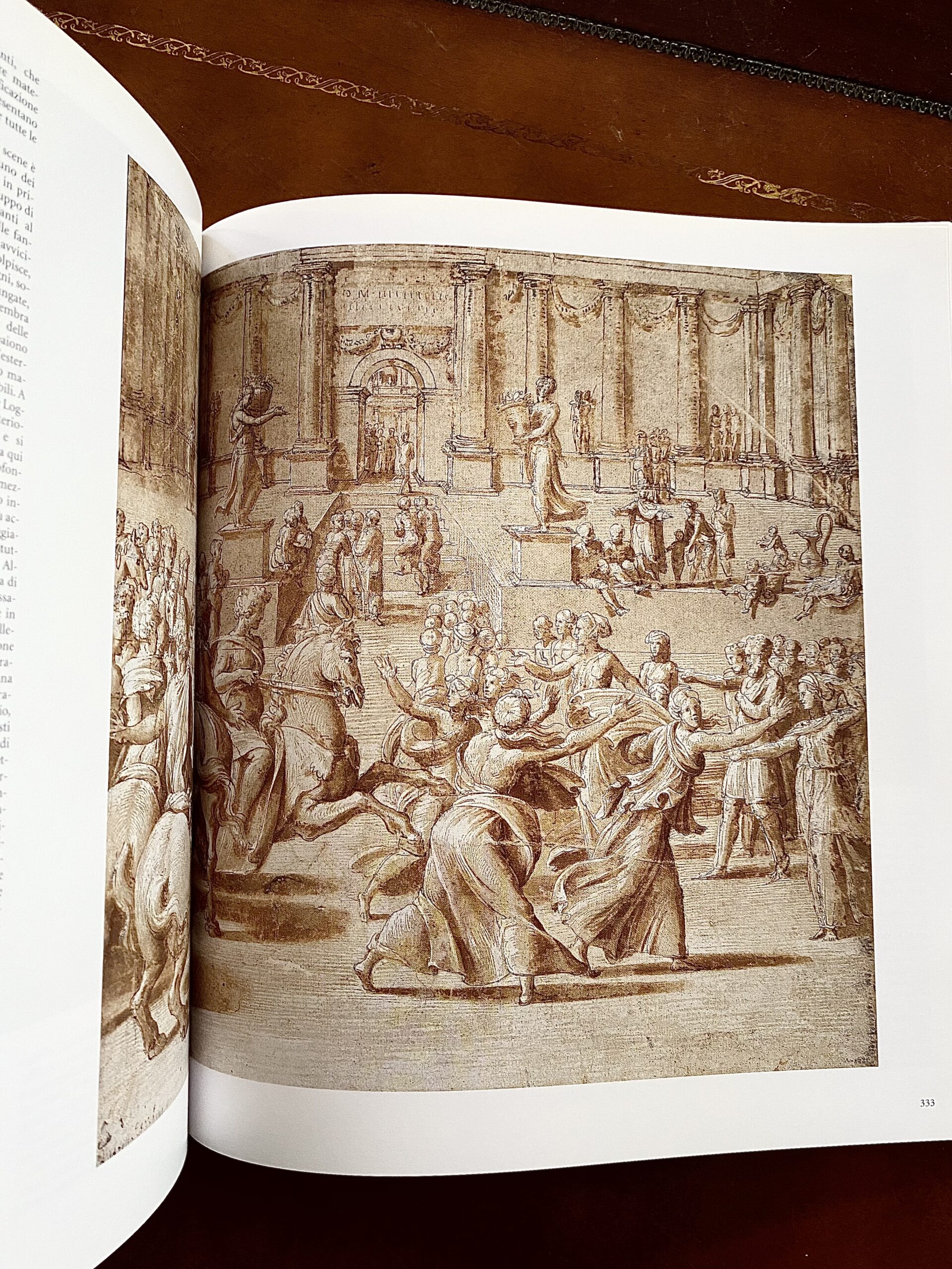 Large, magnificent, Italian coffee table art book “Roma e lo stile classico di Raffaello.” Features 425 pages of artwork from the 1500s. The text is in Italian. Copyright 1999. Measures 11″ x 10″.