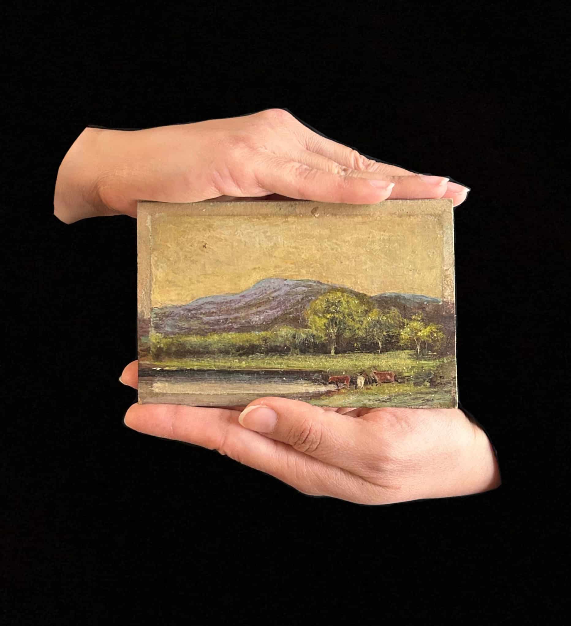 Vintage naturescape oil painting on thin cardboard. So charming, so dainty, so versatile and can be styled in countless areas around your home.
