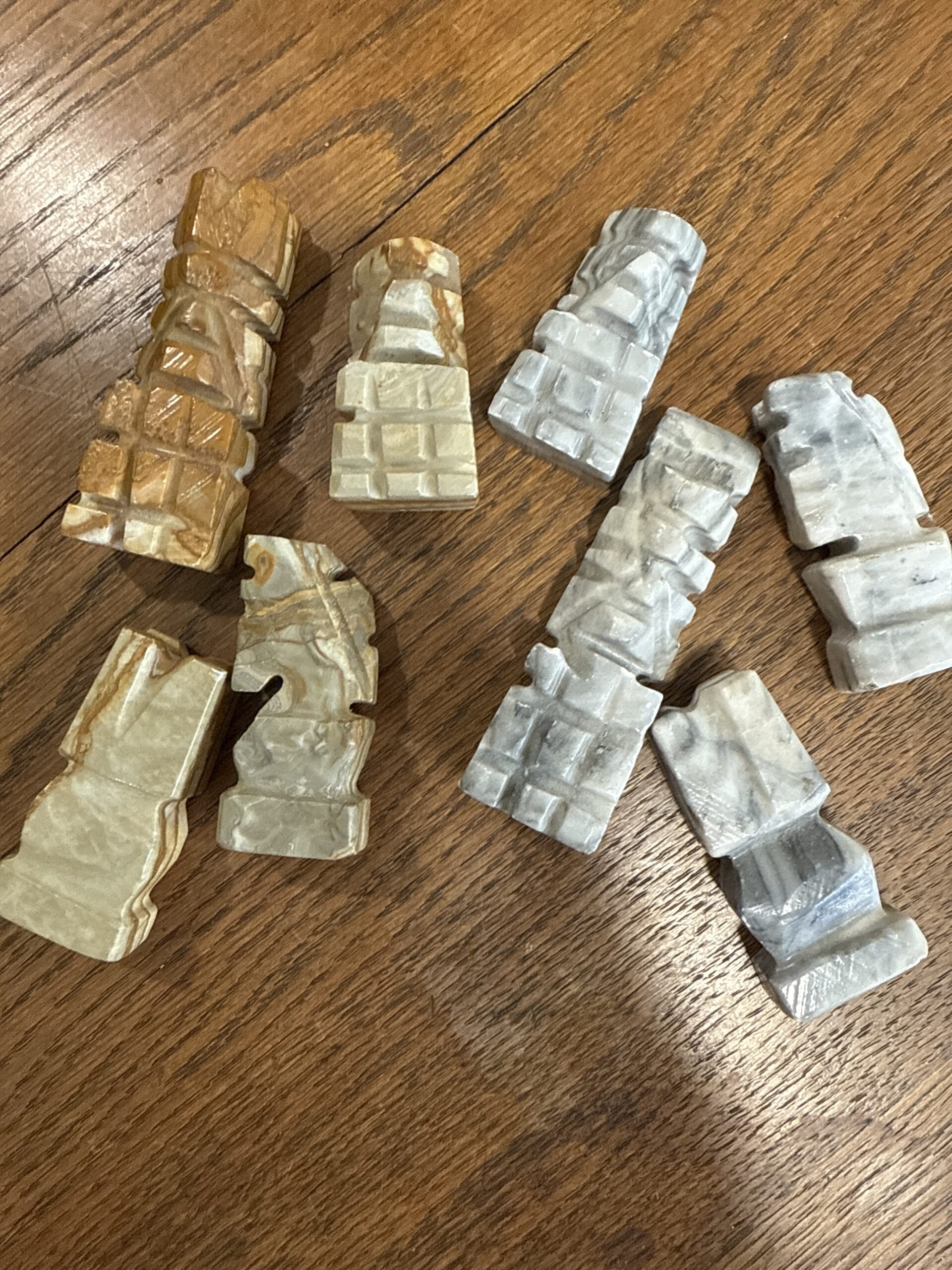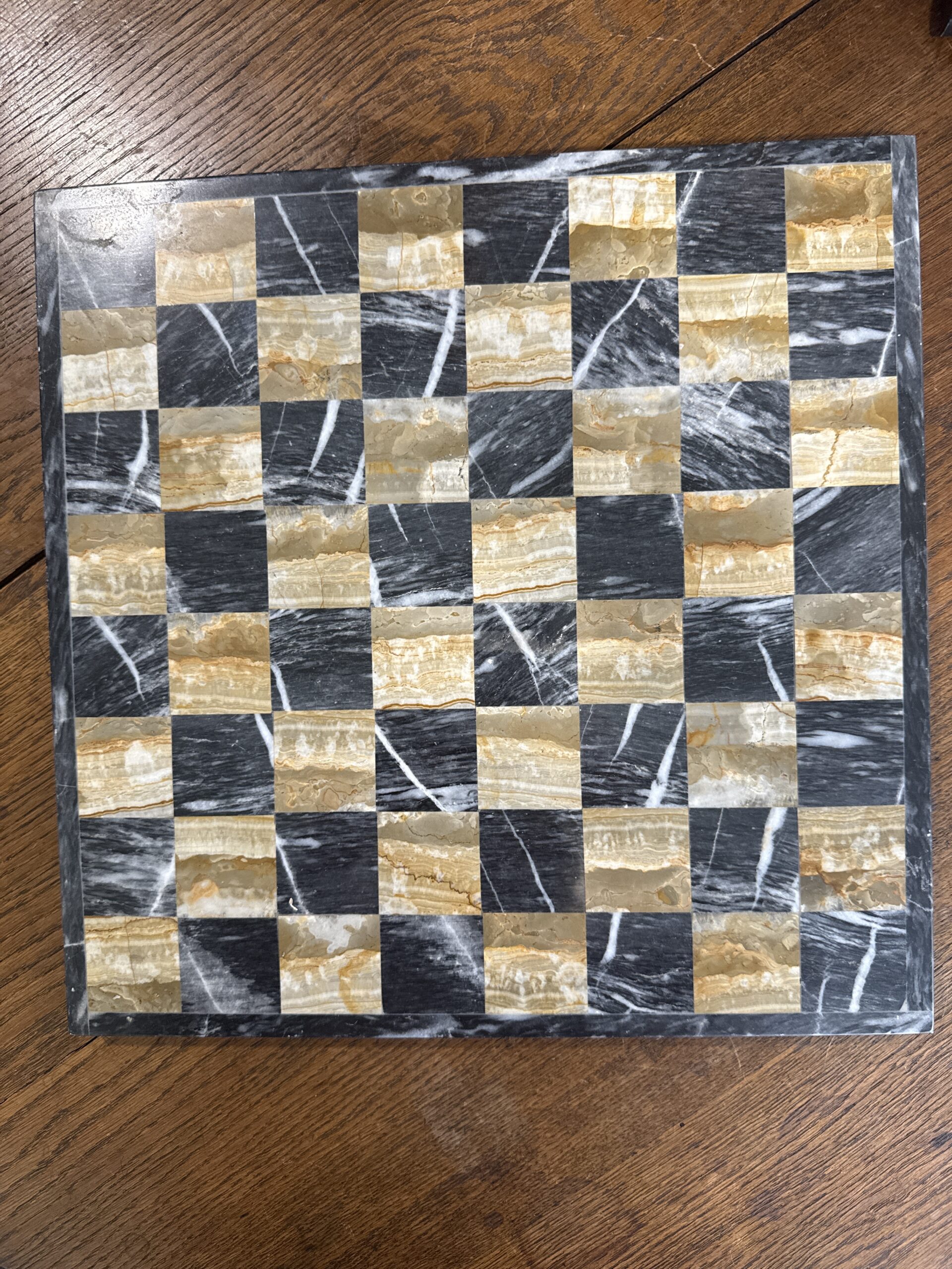 Gorgeous marble chess set with all pieces. Neutral and beautiful and functional for playing the game or just as decor. Bonus: use it to serve charcuterie to be a real star.