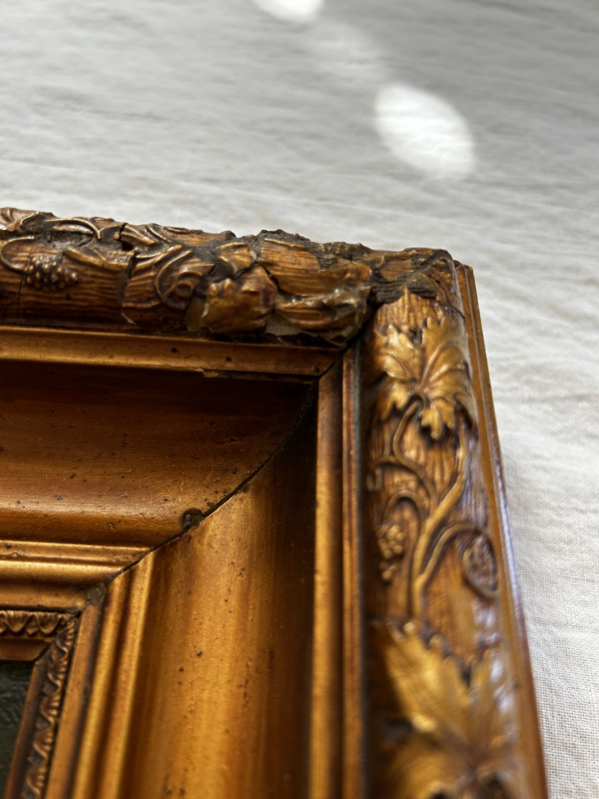 Some pieces seem to have fallen off the frame and an attempt to glue them back was made as seen in the pictures.