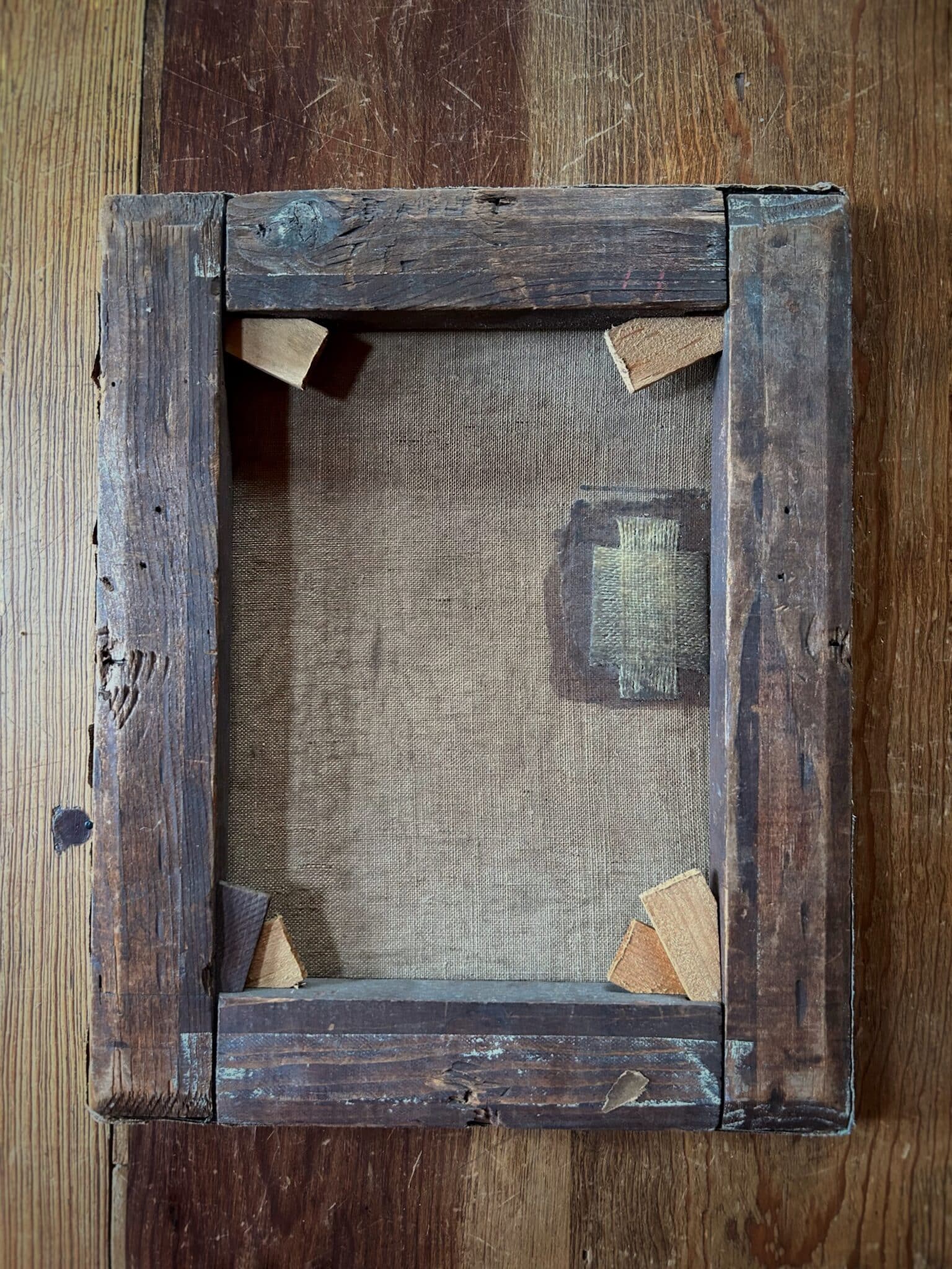 Please note areas of loss as well as repair made to canvas, aging characteristic of vintage art