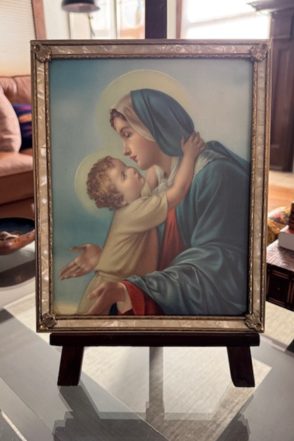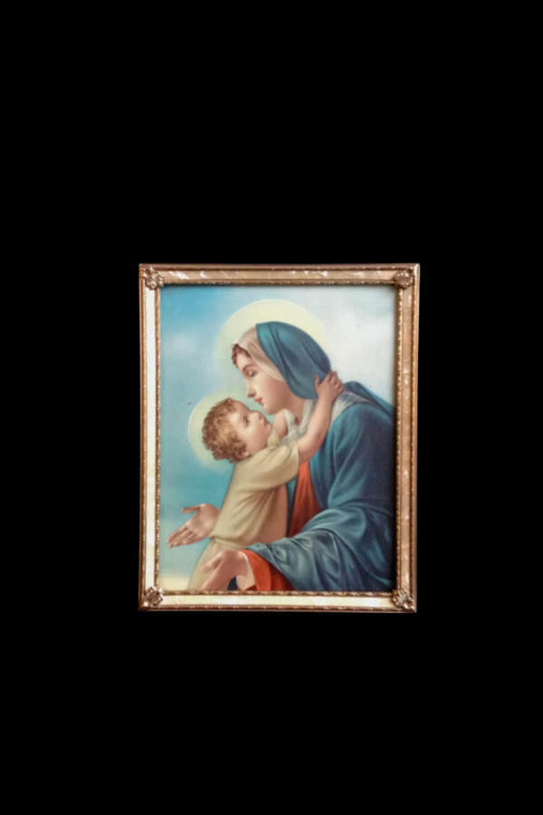 Print of Mother Mary and Baby Jesus. Back of print states this was from 1962 and printed in Italy.