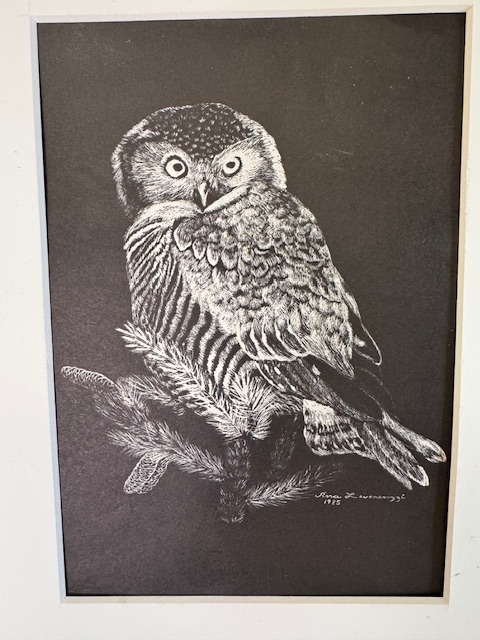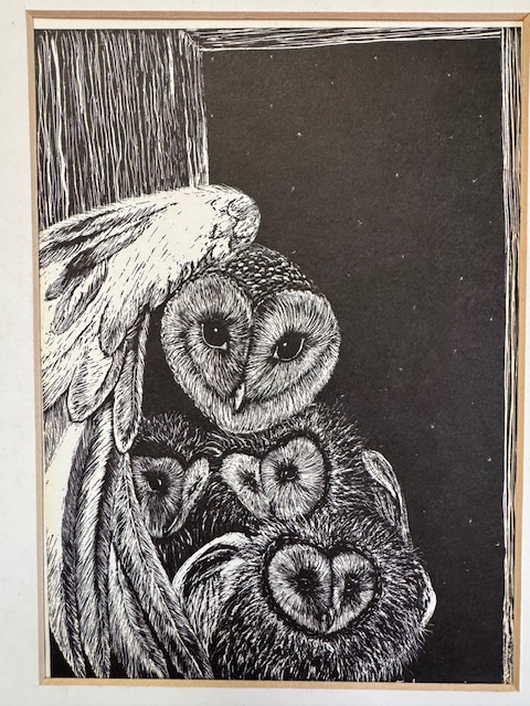 Pair of Ink Scratch Board Owl Prints, Shipping Included