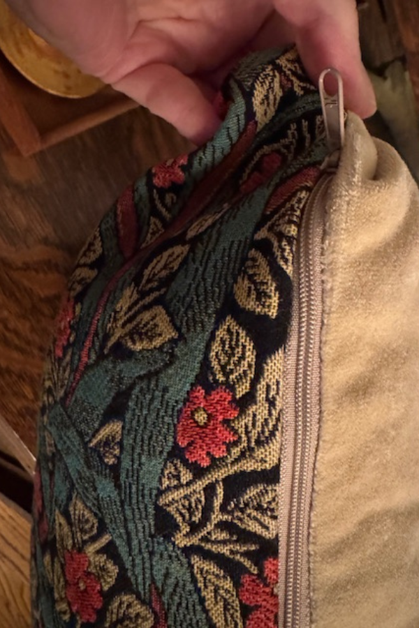 Pair of William Morris design throw pillow covers (inserts not included). These have a tan velour fabric on the backside. Side zipper. No labels, so may be handmade. I am not sure the age of these as they were purchased at an estate sale, but do not look they were used much, if ever. Most likely these are NOT vintage, but made with newly issued William Morris design fabric. Covers measure 18 x 18. Shipping is included, but only within the contiguous US
