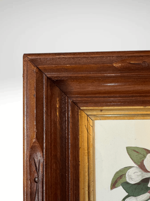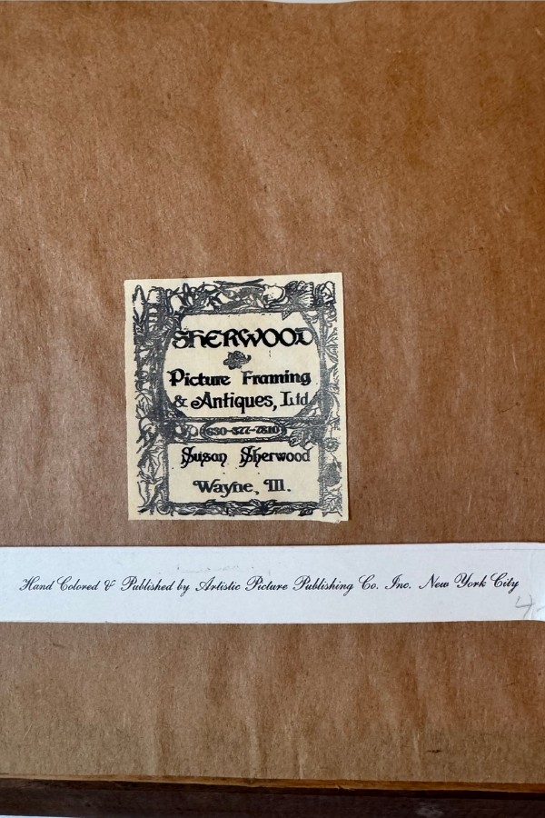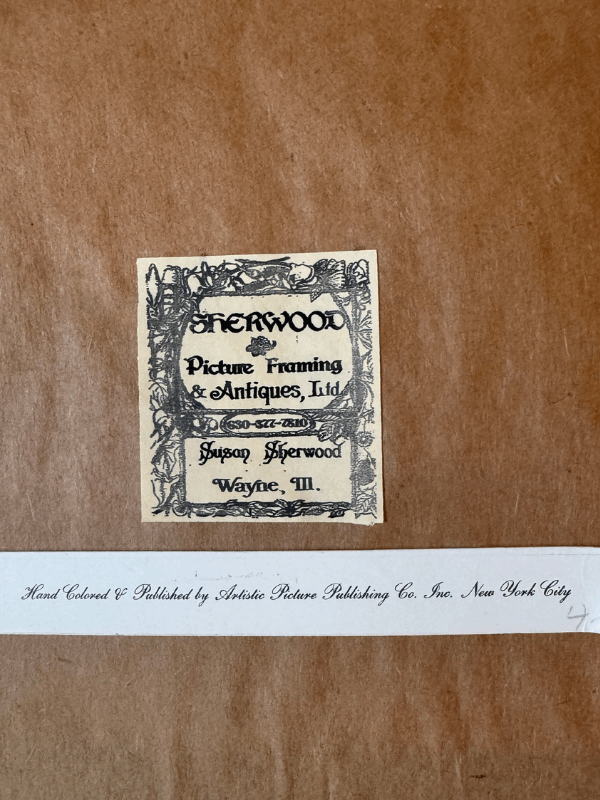 This was purchased from an antique dealer and framer’s estate sale. She had all the seasons displayed in her library. I have the set of four listed in the shop so please take a look if you think you might like more than one. The Autumn frame is most likely walnut and has an Adirondack style edge with a gold painted inner band. Shipping is included with the set, but I can only ship within the contiguous US