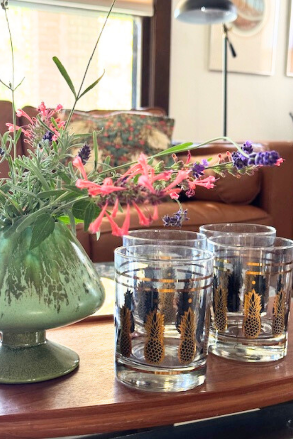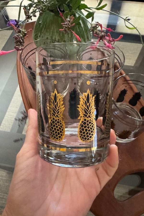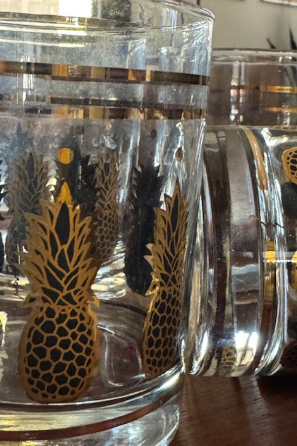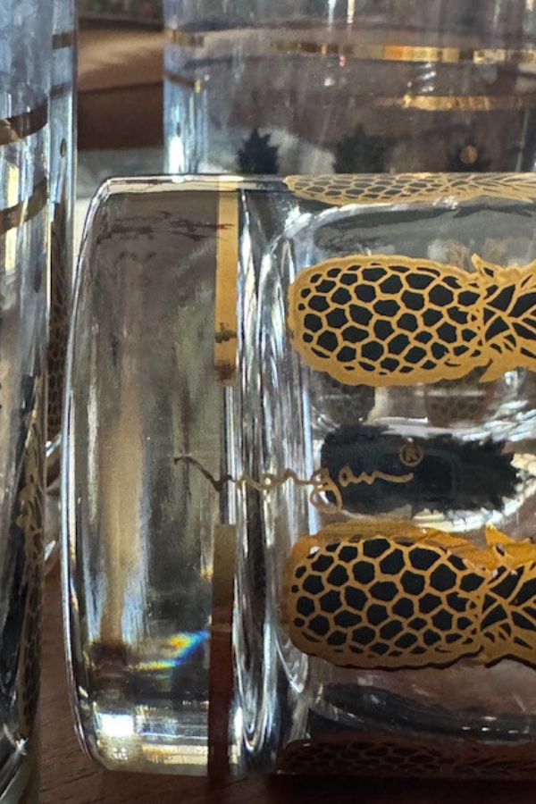 Beautiful heavy barware by Morgan featuring black and gold pineapples with gold bands at top and bottom. Perfect addition to your bar cart or displayed on a sideboard. Great for holiday entertaining. In good vintage condition. Shipping is included with this listing, but only within the contiguous US