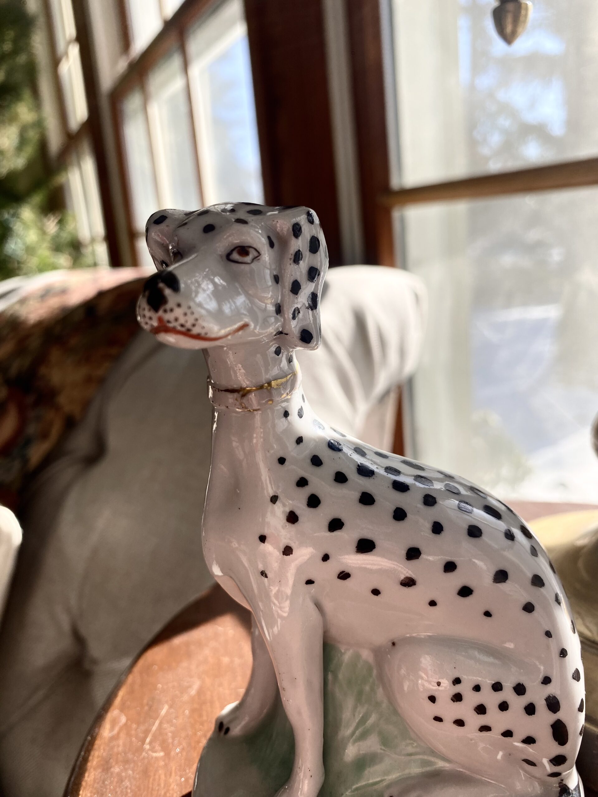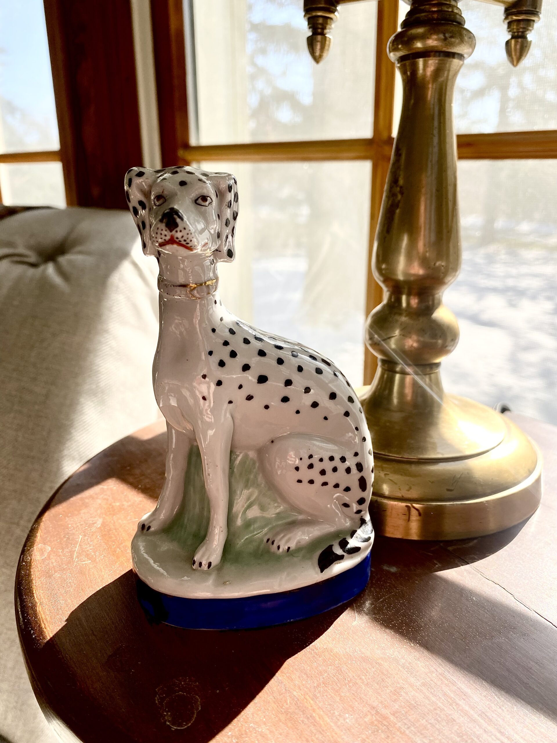 Vintage German porcelain Dalmatian figure in Staffordshire style from the 1980’s. Measures 5.5″ tall and 3.25″ wide at base.