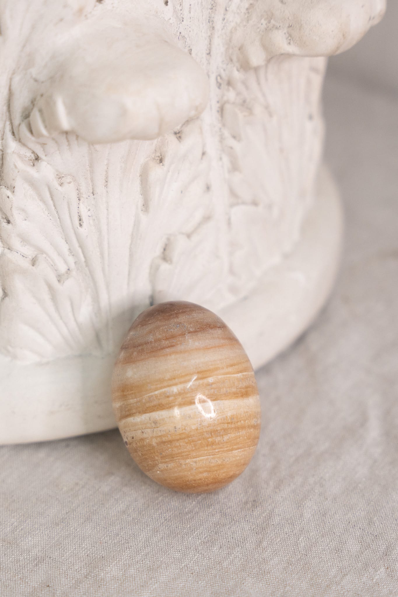 Stone egg. Perfect for some subtle Spring/Easter decor. Minor wear consistent with age.