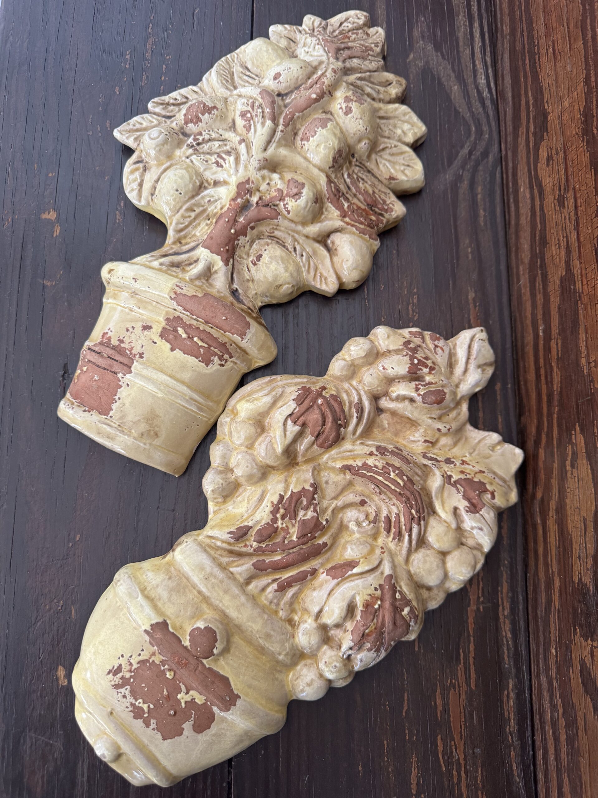 Beautiful pair of wall plaques- terra cotta and chippy paint look. They are not identical!