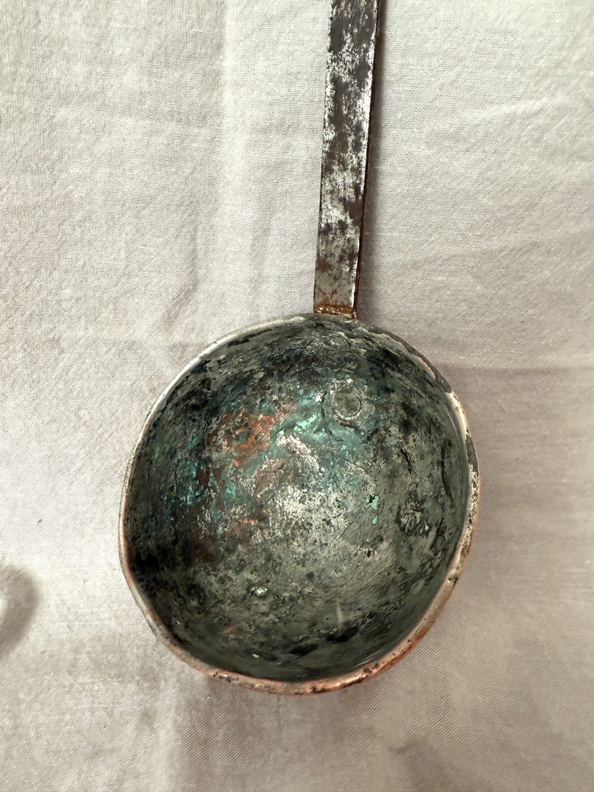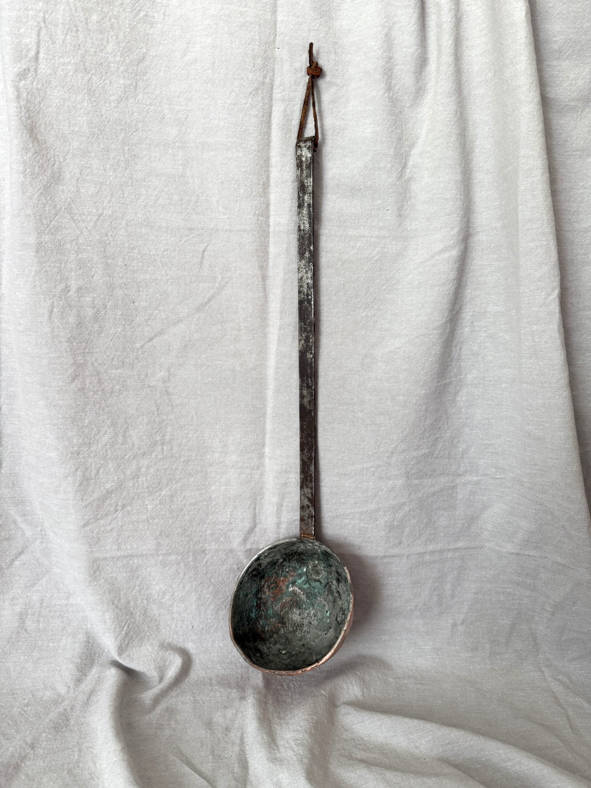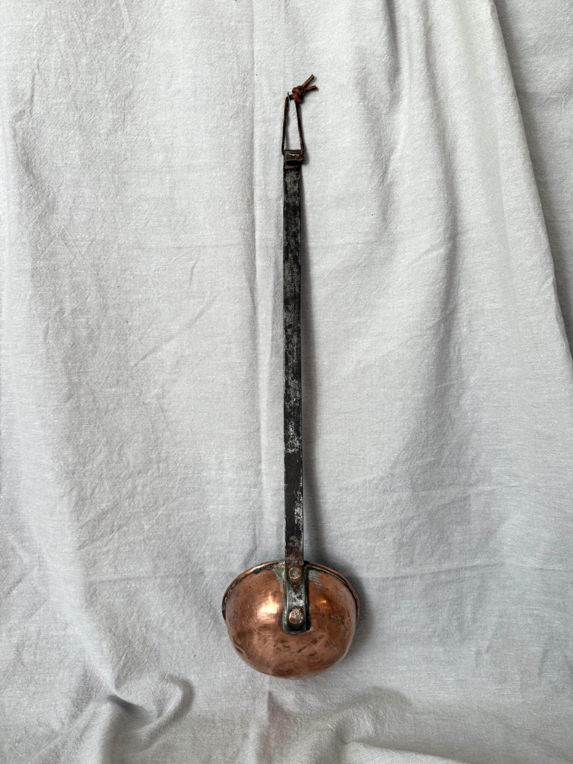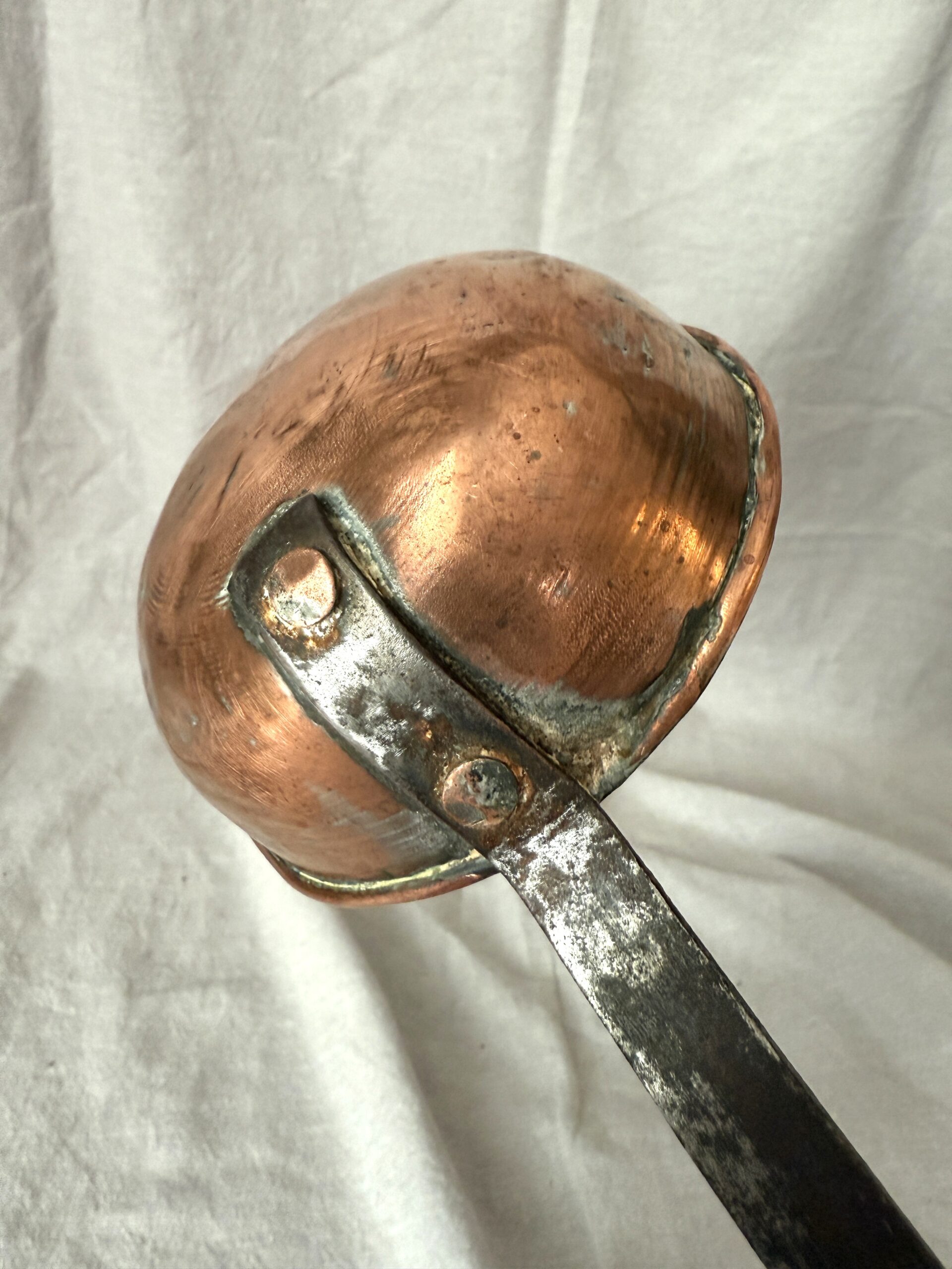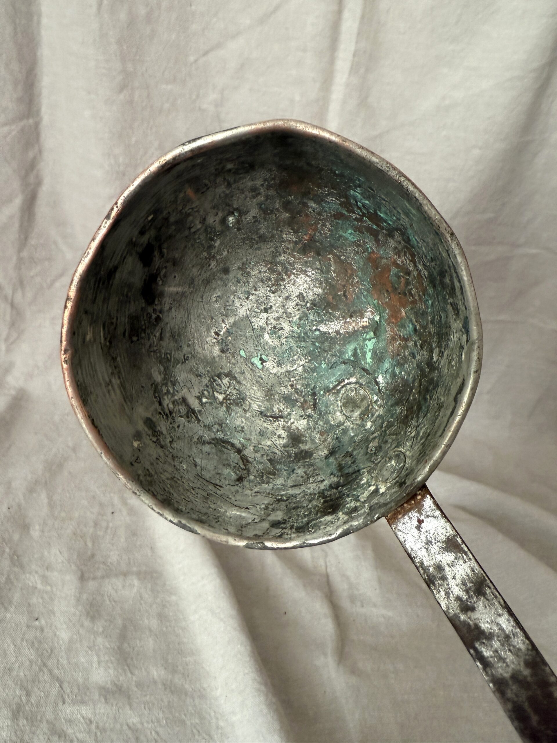 Vintage Copper-on-Tin Ladle with Iron Handle Very Rustic and Weathered 18″
