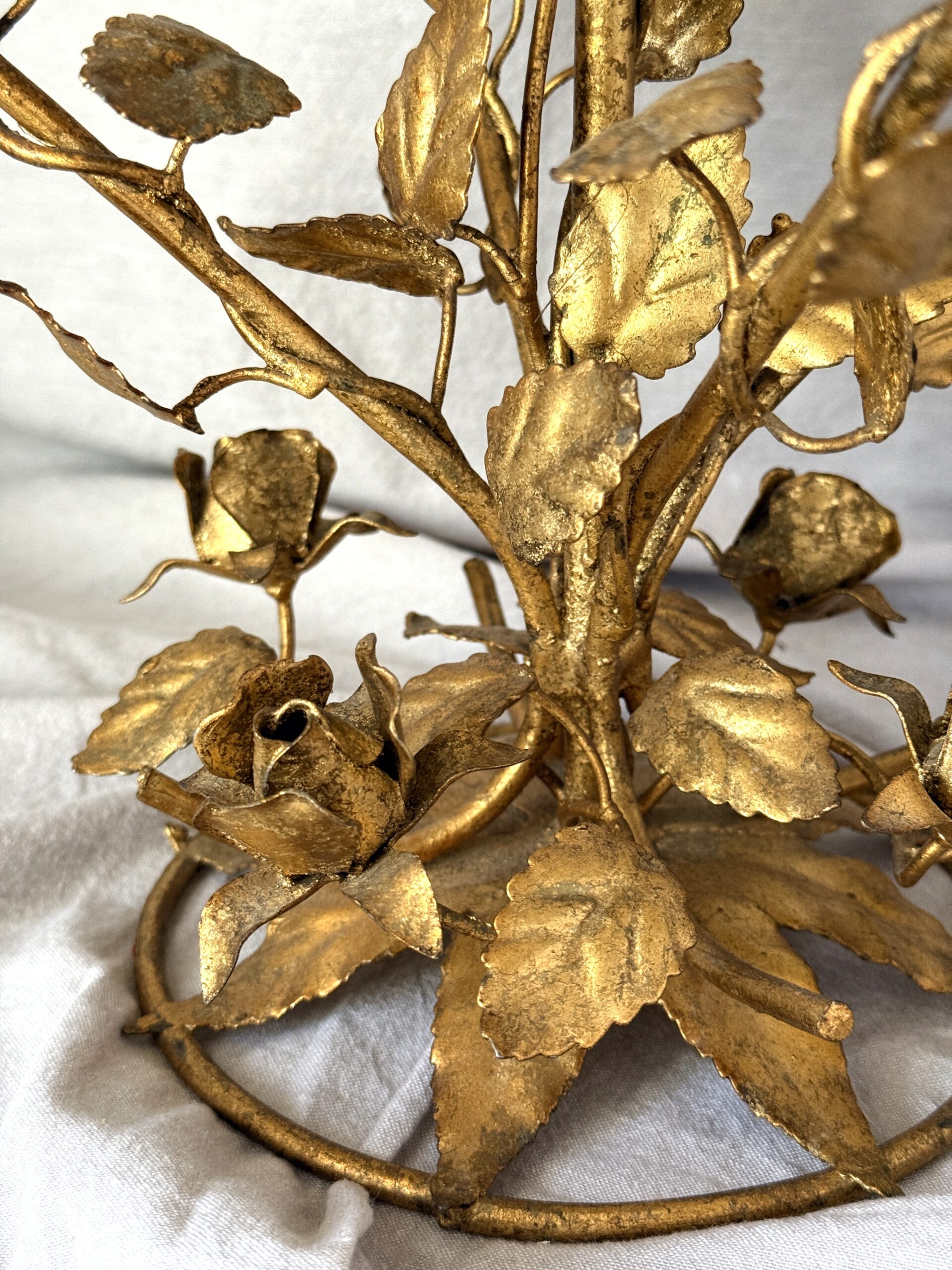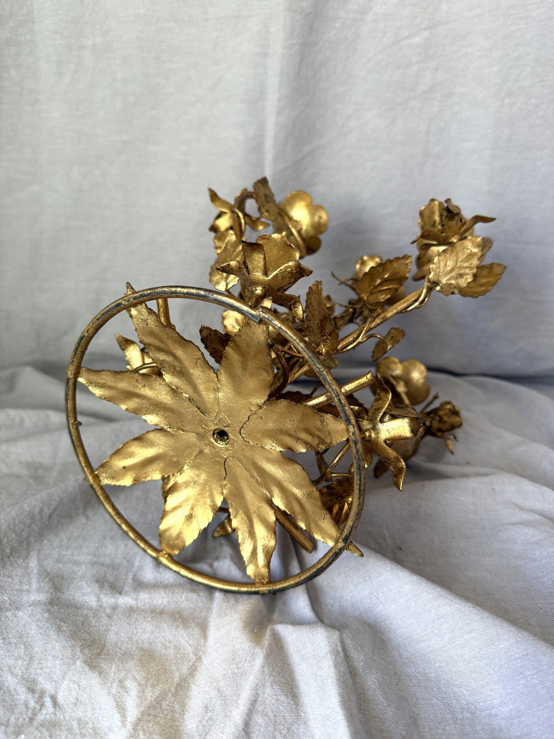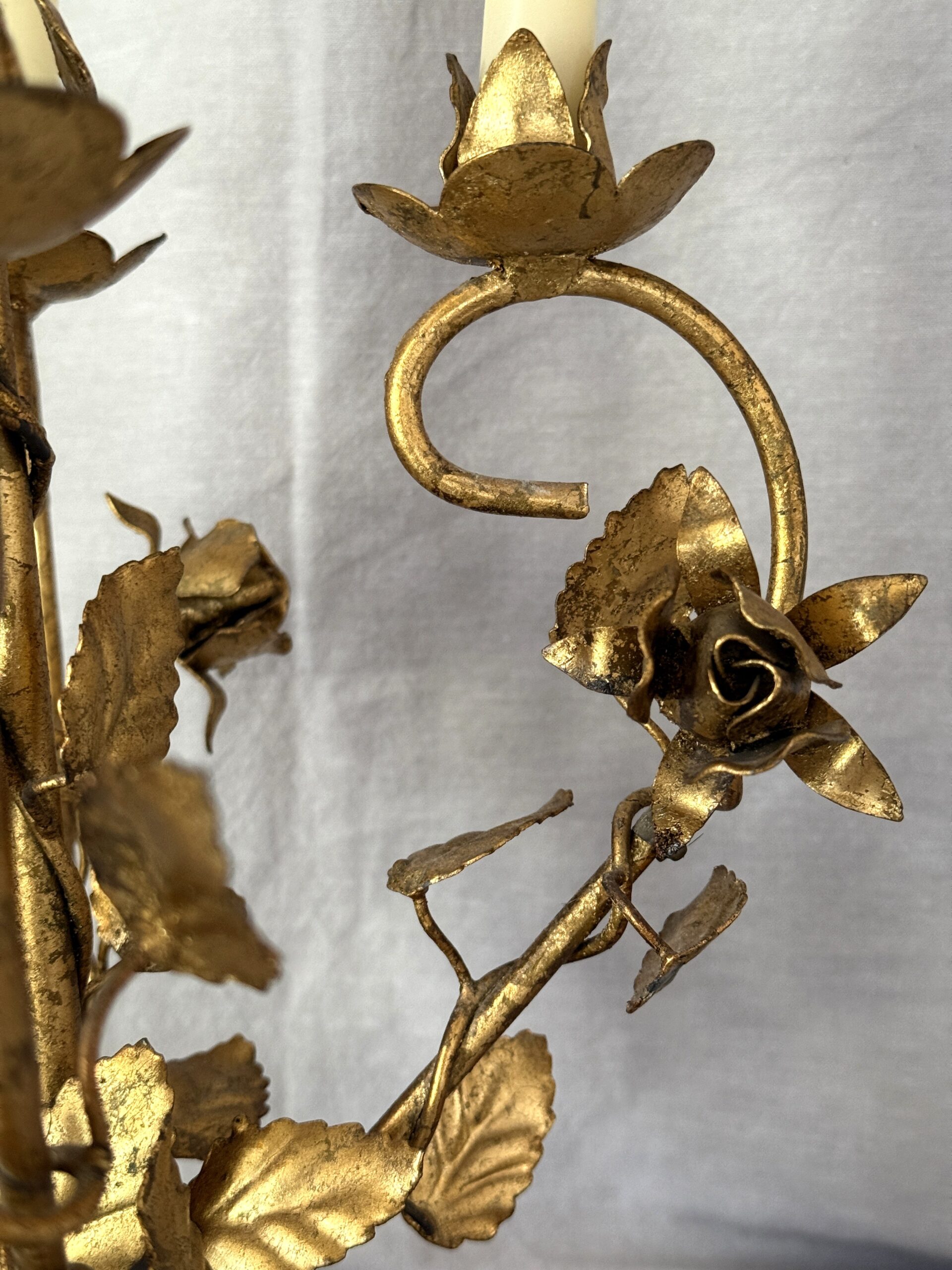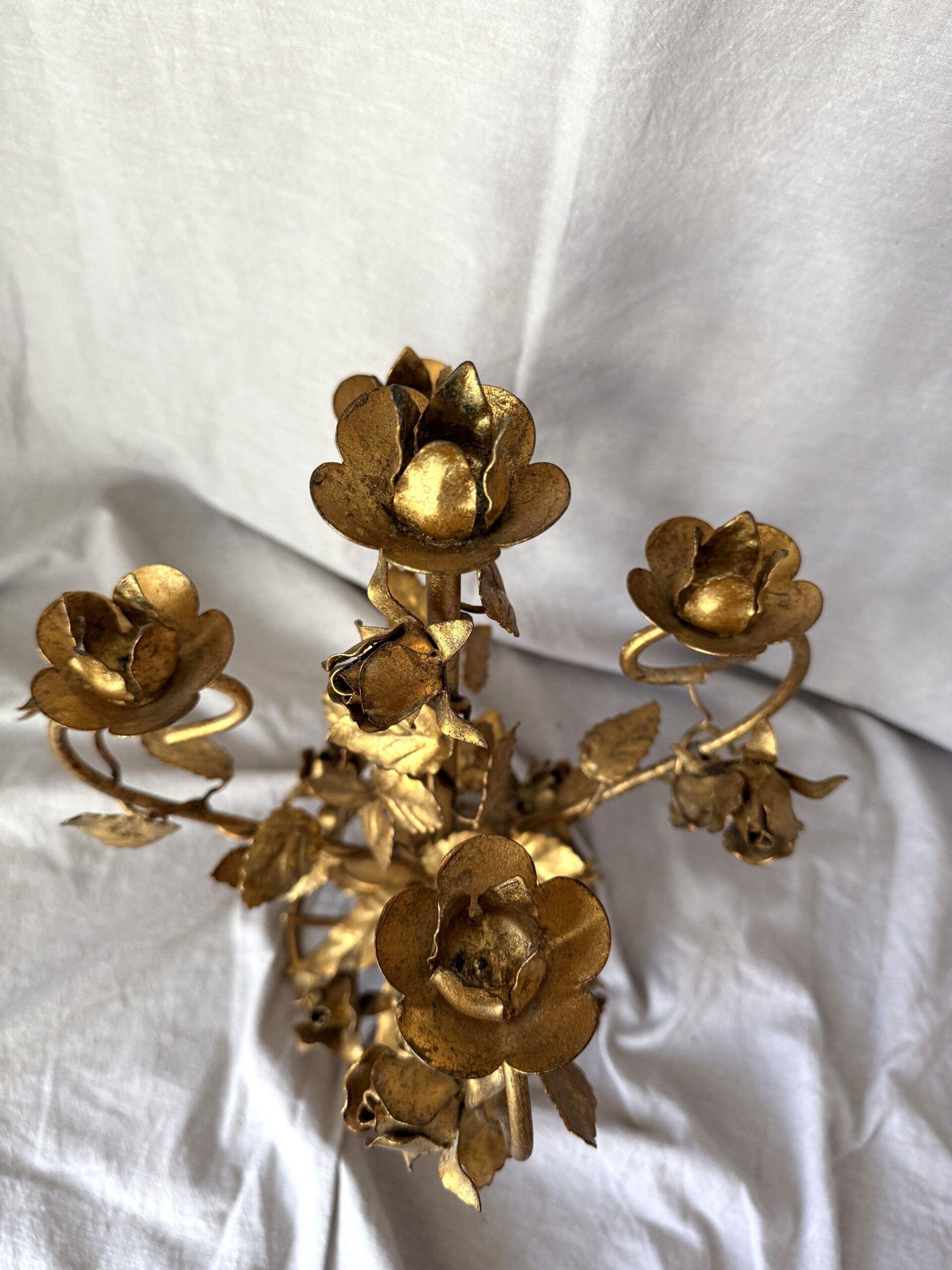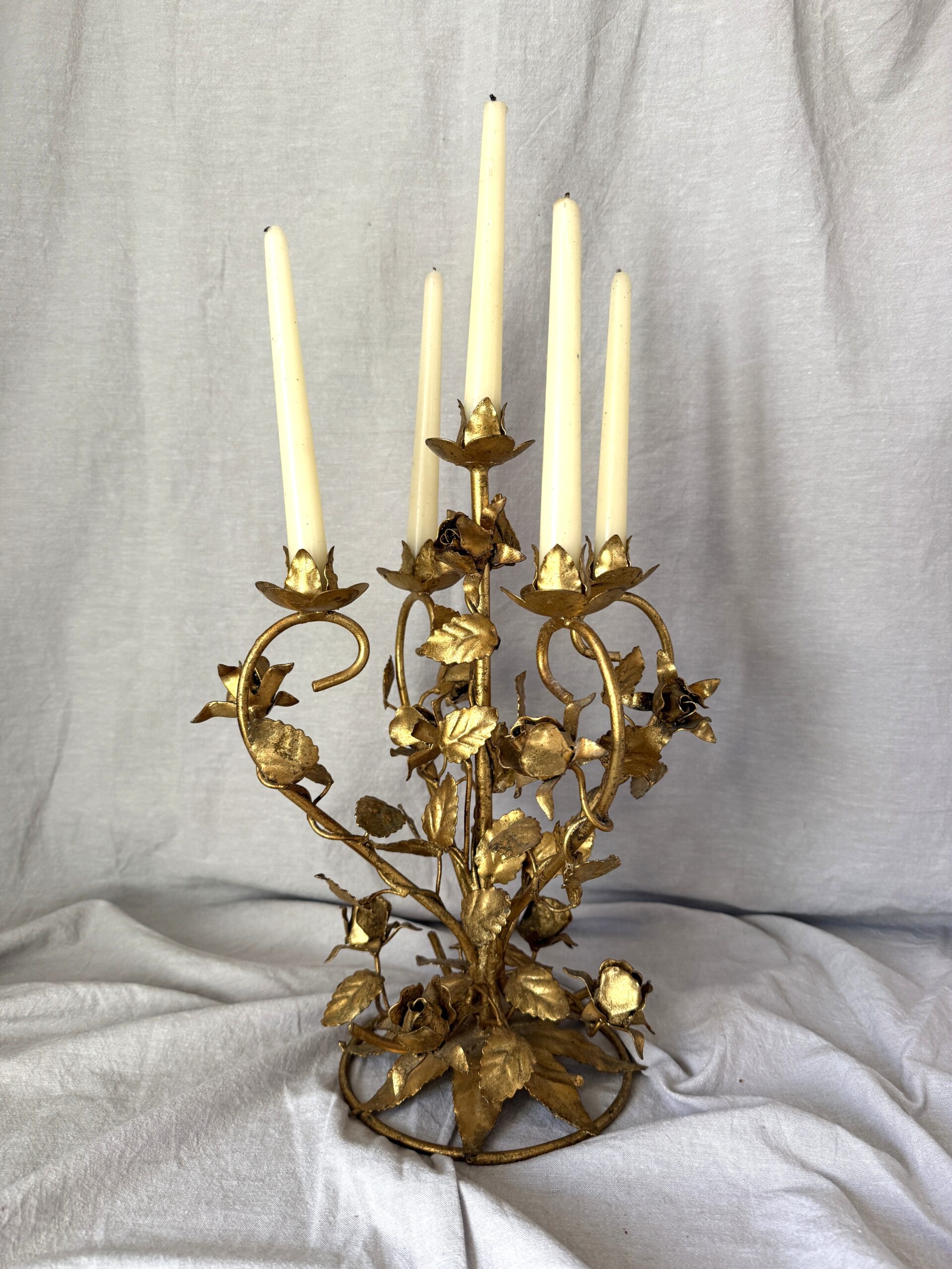 Vintage Florentine Gilded Tole 5-Light Candelabrum with Rose Motif 15.25″