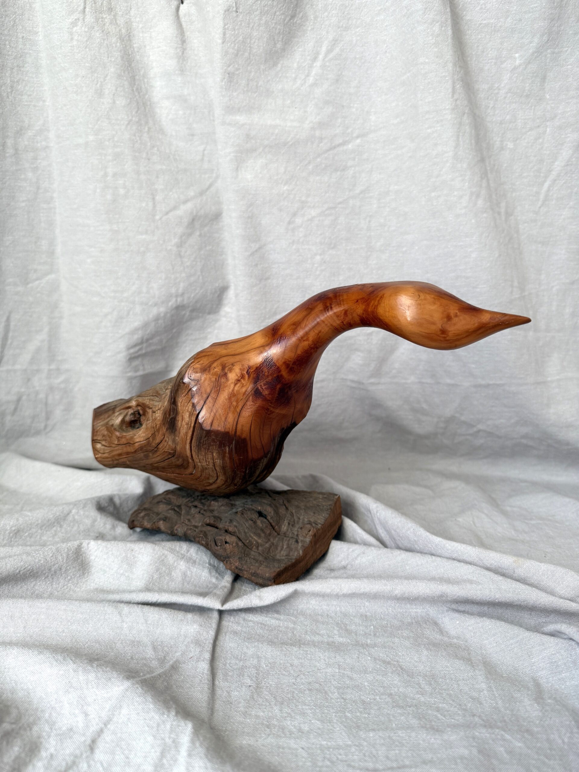 Vintage Hand-Carved Fence-Post Goose or Duck Sculpture with Live Edge 14.75″