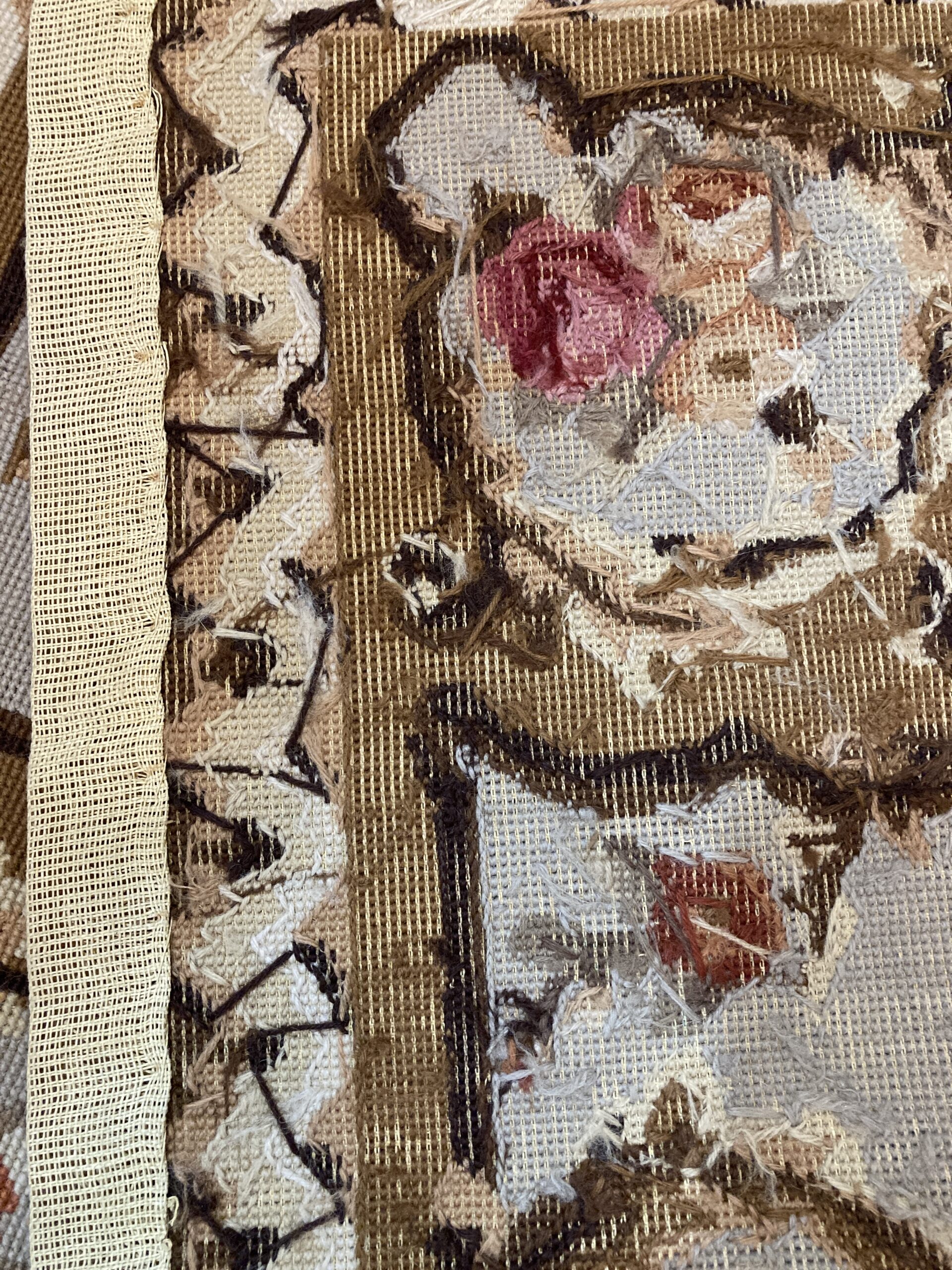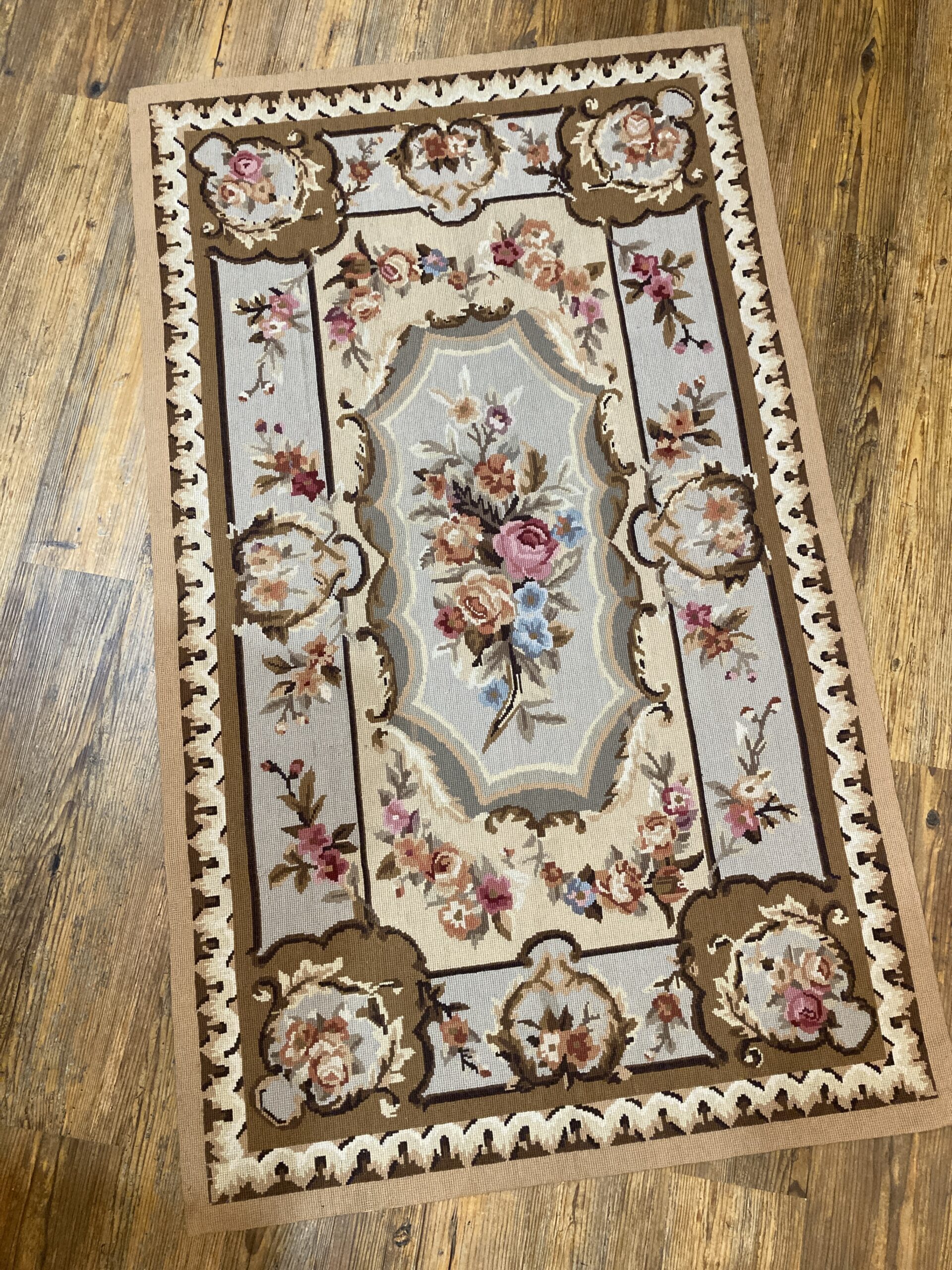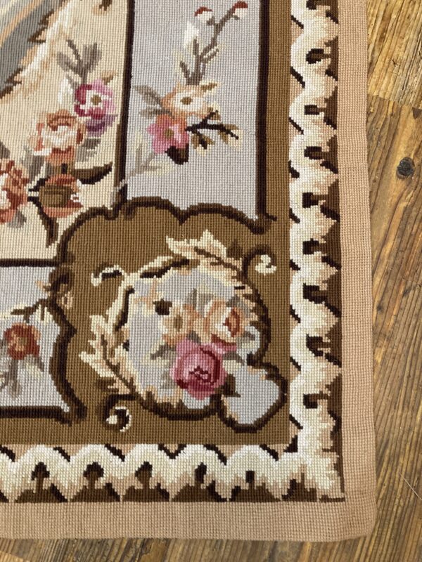 A second needlepoint rug–a couple of inches larger–is available here (see last image): https://www.vintage-keepers.com/product/vintage-hand-made-neeldpoint-throw-rug-aubusson-style-5-x-211/