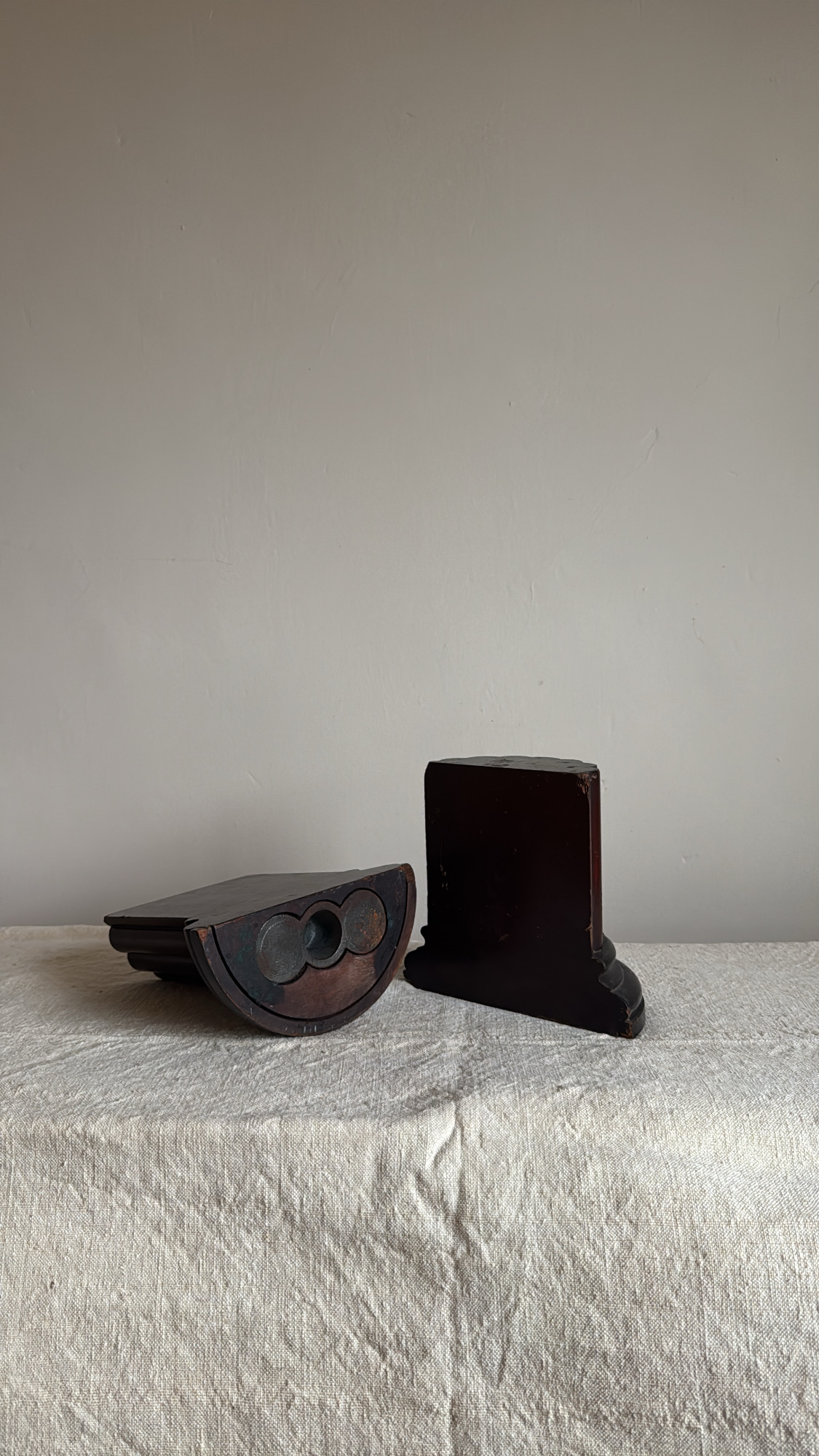 A handsome pair of solid mahogany bookends inspired by classical architectural columns. Rich in tone with beautifully carved fluting and a smooth polished finish, they add timeless sophistication to any shelf or study—where design meets history in perfect balance. Vintage patina and wear with age (see images).