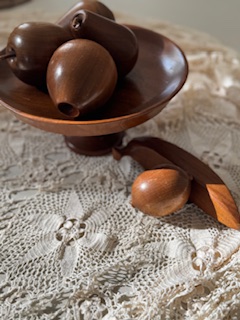 gorgeous wood fruit collection with wood compote- fruit is life size
