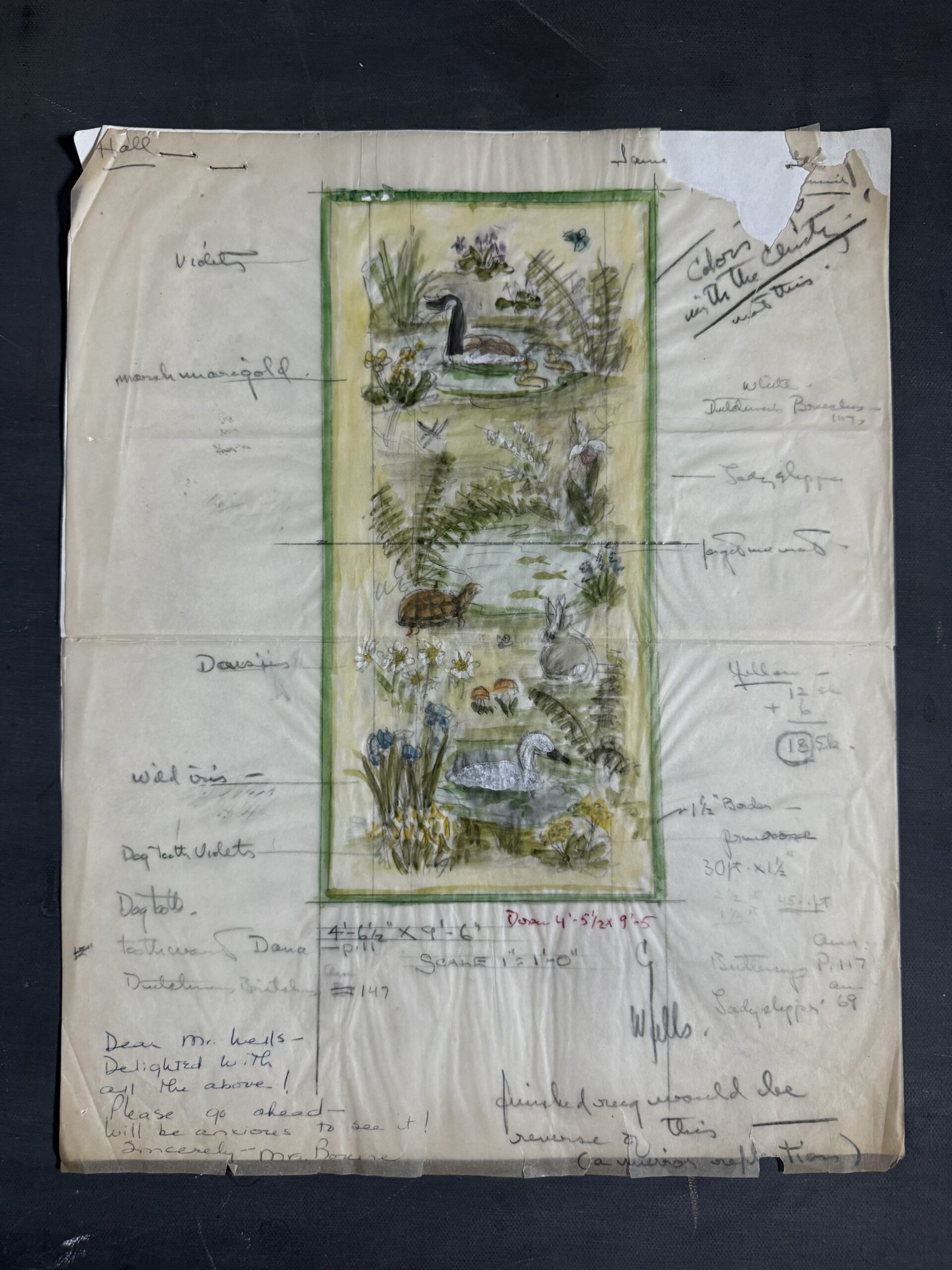 George Wells rug sketch, ready for framing. signed